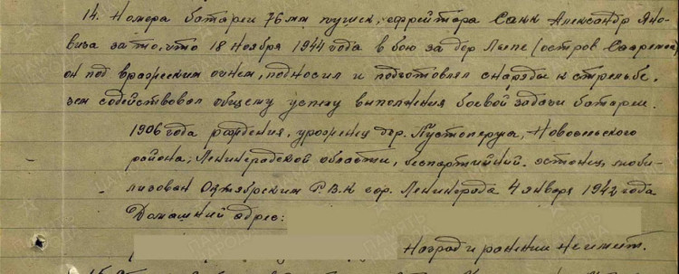 Autasuleht umbes nii: 19. oktoober 1944 pidi reamees Alfred Erm Sõrve poolsaarel 10 minuti jooksul vaenlase miinipilduja tule all toimetama käsu ????. Seda tegi ta vapralt ja ajaliselt. Esitati VM, aga sai LT. Huvitav, et ta on märgitud hukkunute nimekirja VL lahingu ajal.