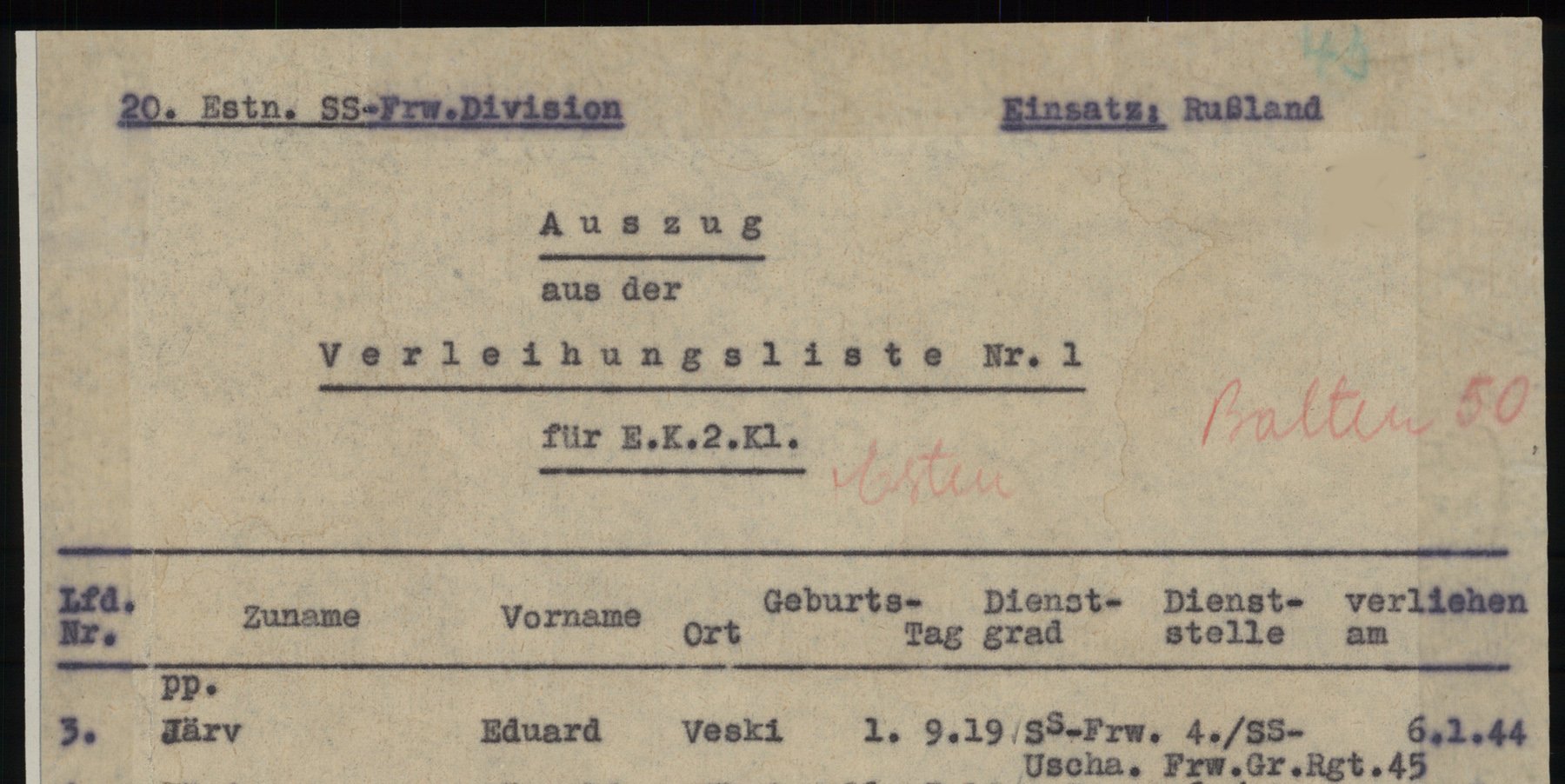Kümme aastat tagasi hakkasin SIIA teemasse koguma eestlastest Raudristi kavalere ja neid kogunes 1229 nime aga tegelikult on mul neid kirjas juba üle 2400. Eelmisel aastal tuli läbi Bundesarchiv'i digiteeritud dokumentide uusi nimesid nagu paisu tagant ja koondasin kõik (BA + foorumi omad) kokku Exceli tabelisse, mis ootab veebipõhiseks andmebaasiks saamist. Neid nimesid tilgub endiselt juurde. Ilmselt on foorumiteemasse sattunud ka mehi, kes tegelikult ei olnud EK kavalerid vaid olid saanud Ida-ala rahvaste Vaprusmedali aga hiljem nimetati ka neid Raudristi kavalerideks. Meenub, et üks selliseid oli näiteks 183. Eesti julgestusgrupis teeninud ja 1942. aasta suvel langenud leitnant Eugen Sutt.