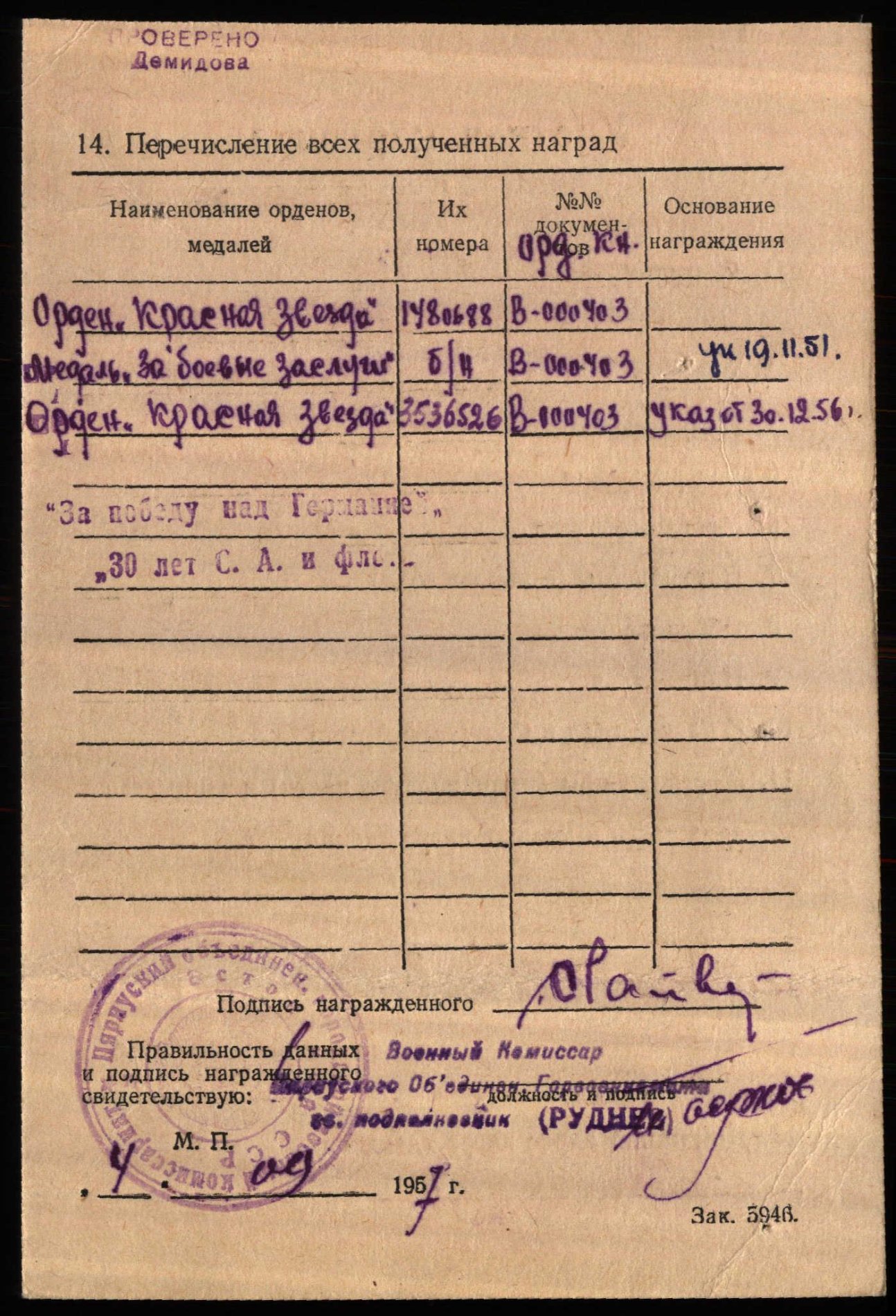 450022, kapten Petr Razivin, 14. Üksiku sidepataljoni partorg. Orden saadud suuremalt jaolt mitte millegi eest.