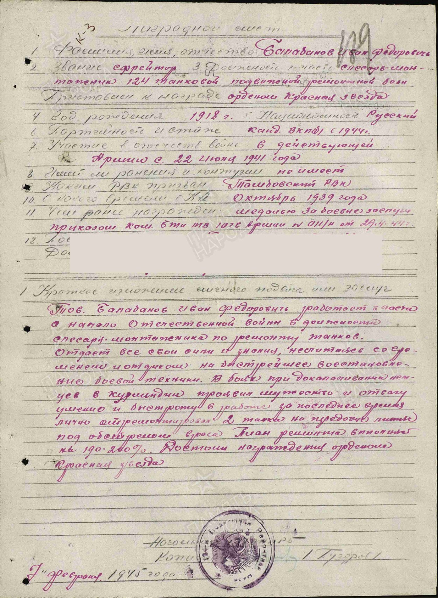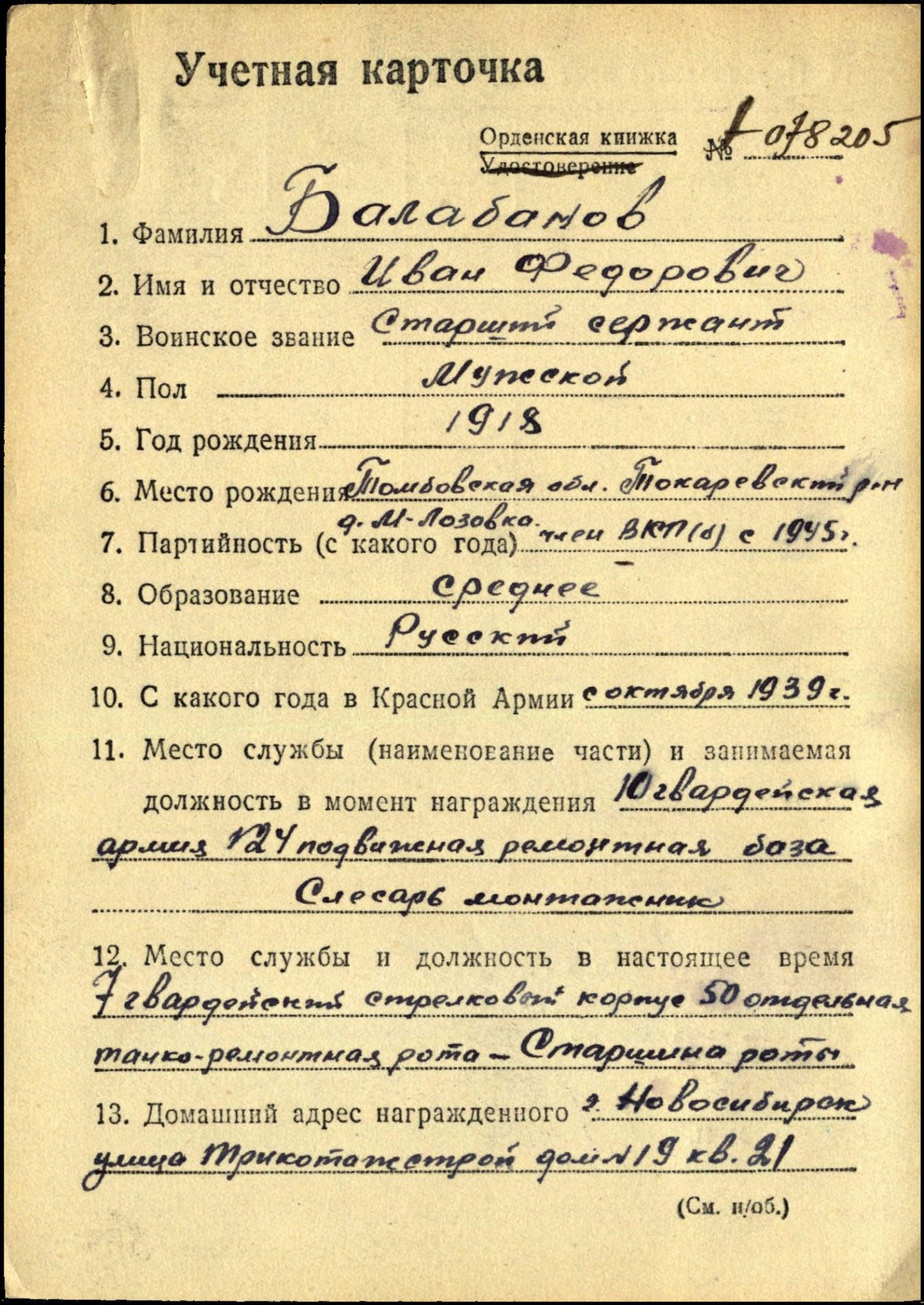 Siin varem katse- eksituse meetodil sai eeldatud, et Punatähe ordeni nr. 1480141 on samuti saanud keegi Eesti korpusest, aga võta näpust. Kavaleriks on hoopis 124. liikuva tankiremondibaasi tehnik- monteerija jefreitor Ivan Balabanov. Mingi kaudne seos muidugi on, sest ka Balabanov sai oma ordeni 1945.a Kuramaa lahingutes, kus eesliiinil, vaenlase tugeva tule all remontis ära kaks tanki. Balabanov on ka Lahinguteenete medali nr. 871437 kavaler. Nii, et 1480*** seeriasse viskab ka teisi sisse, huvitav analüüsida ja ehk mingeid piire seada.