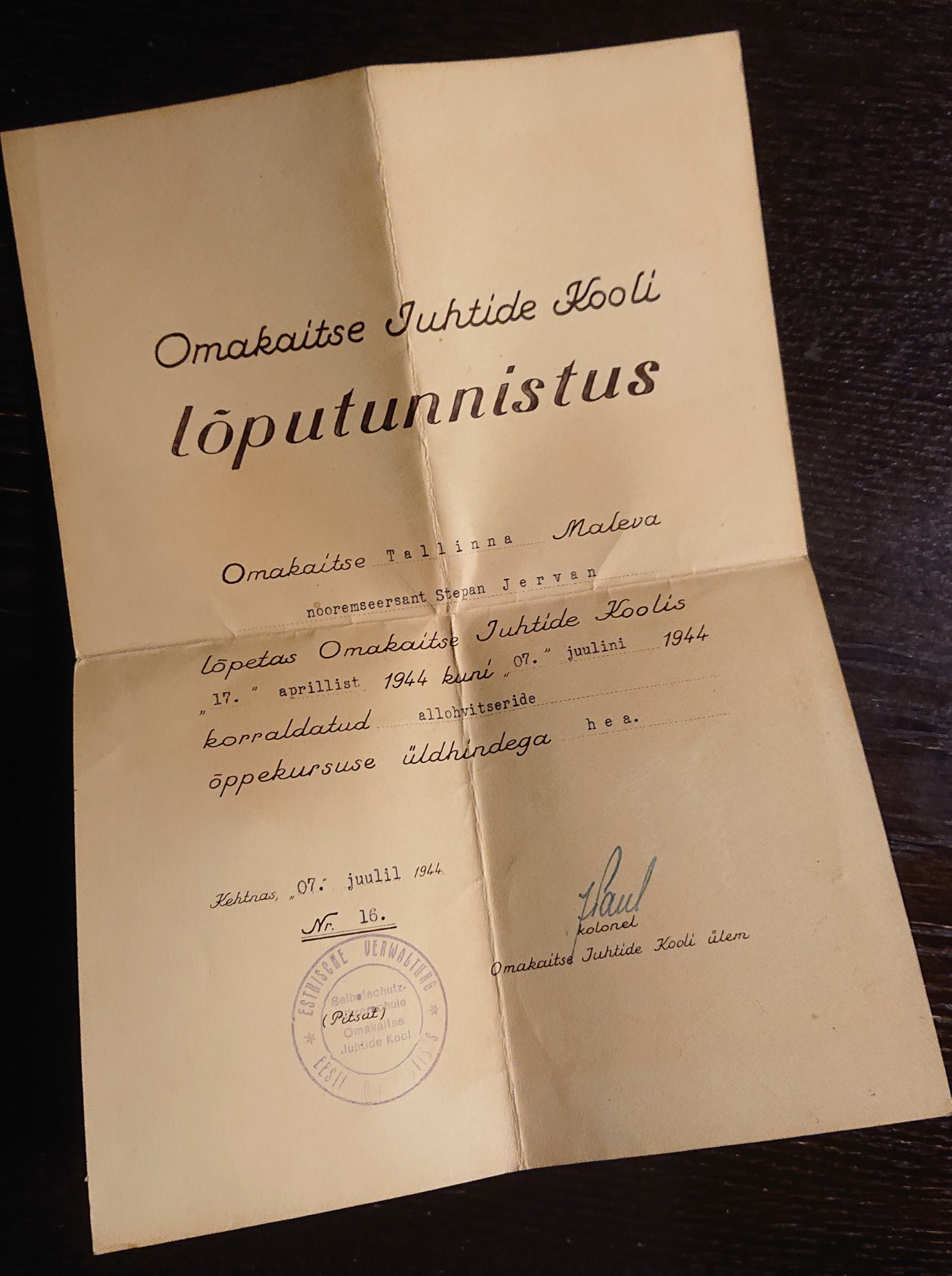 Omakaitse Juhtide Kooli lõputunnistus ...