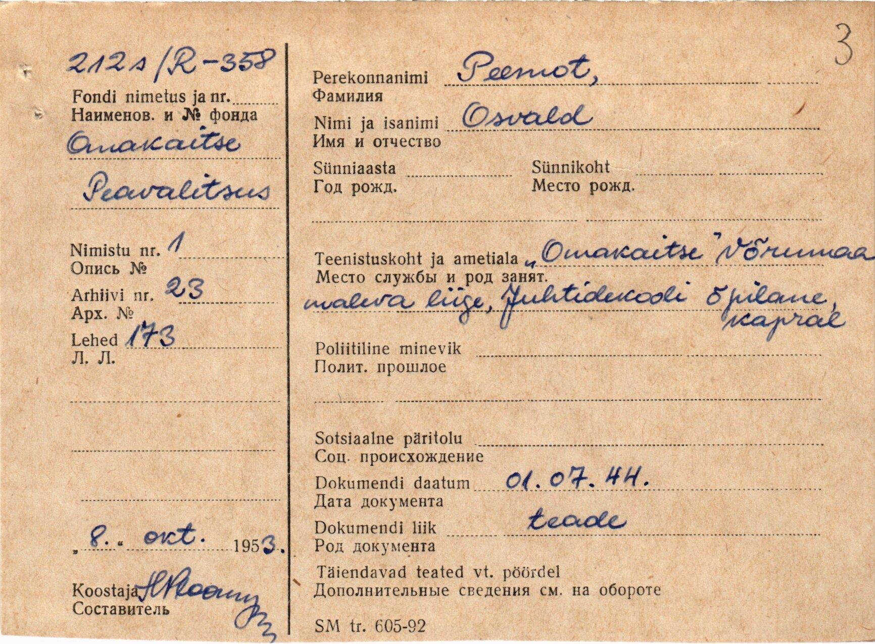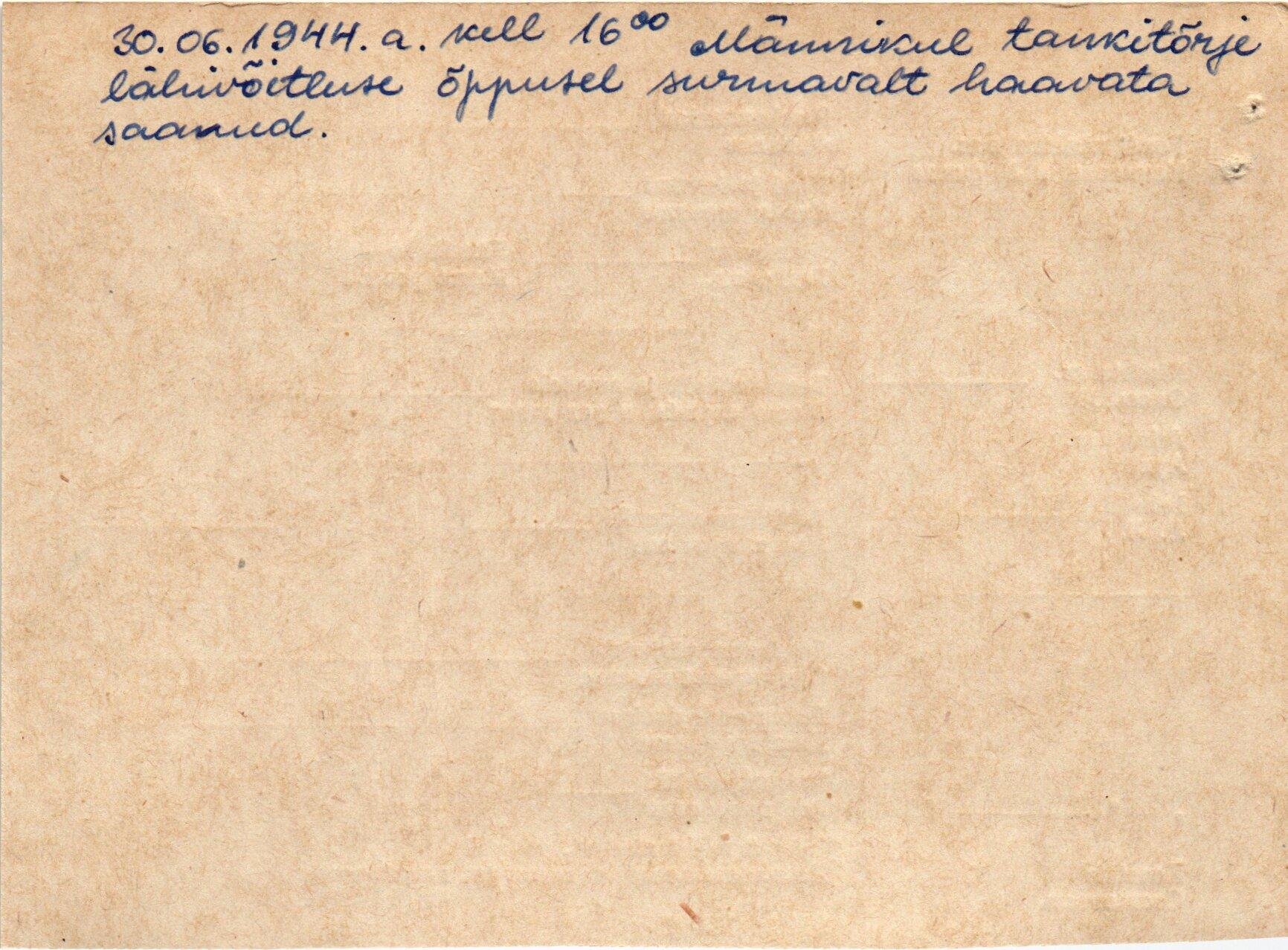 Ei tea, kas need kaks õnnetult surma saanud kapralit olid samal kursusel, kus Jervan kelle lõputunnistuse ma siia postitasin. Tunnistusel on märgitud kursuse lõpuajaks 7. juuli ja kapralid said surma 30. juunil. Osvald Peemot'i geni profiilil on kirjas, et õnnetus toimus Männiku harjutusväljakul.
