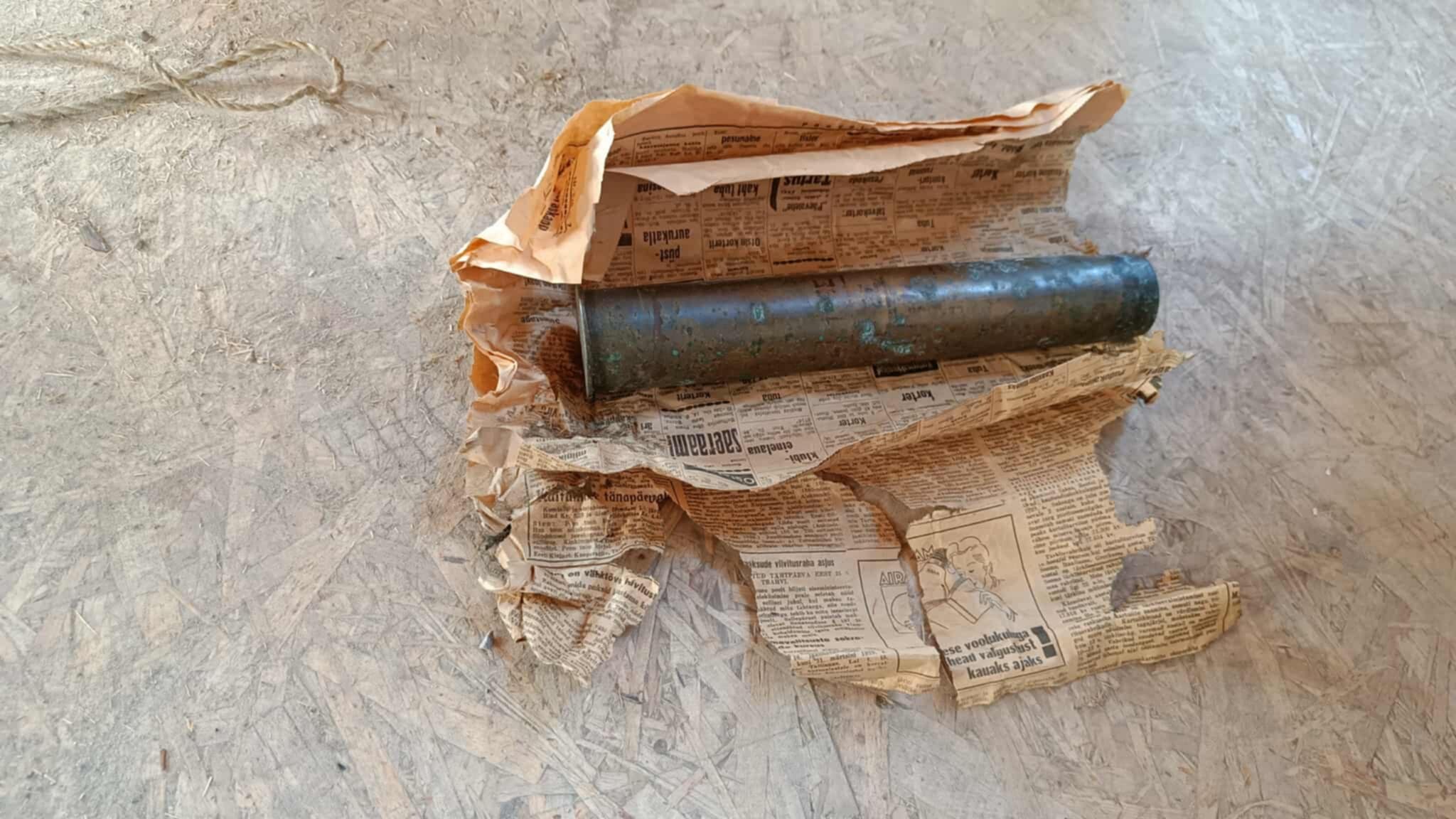 Hülss tühi ja ilmselt kasutatud millegi hoidmiseks mahutina vms. Üks tühi kabuur ka varasemalt välja pudenenud sealt, millest kahjuks pilti pole.