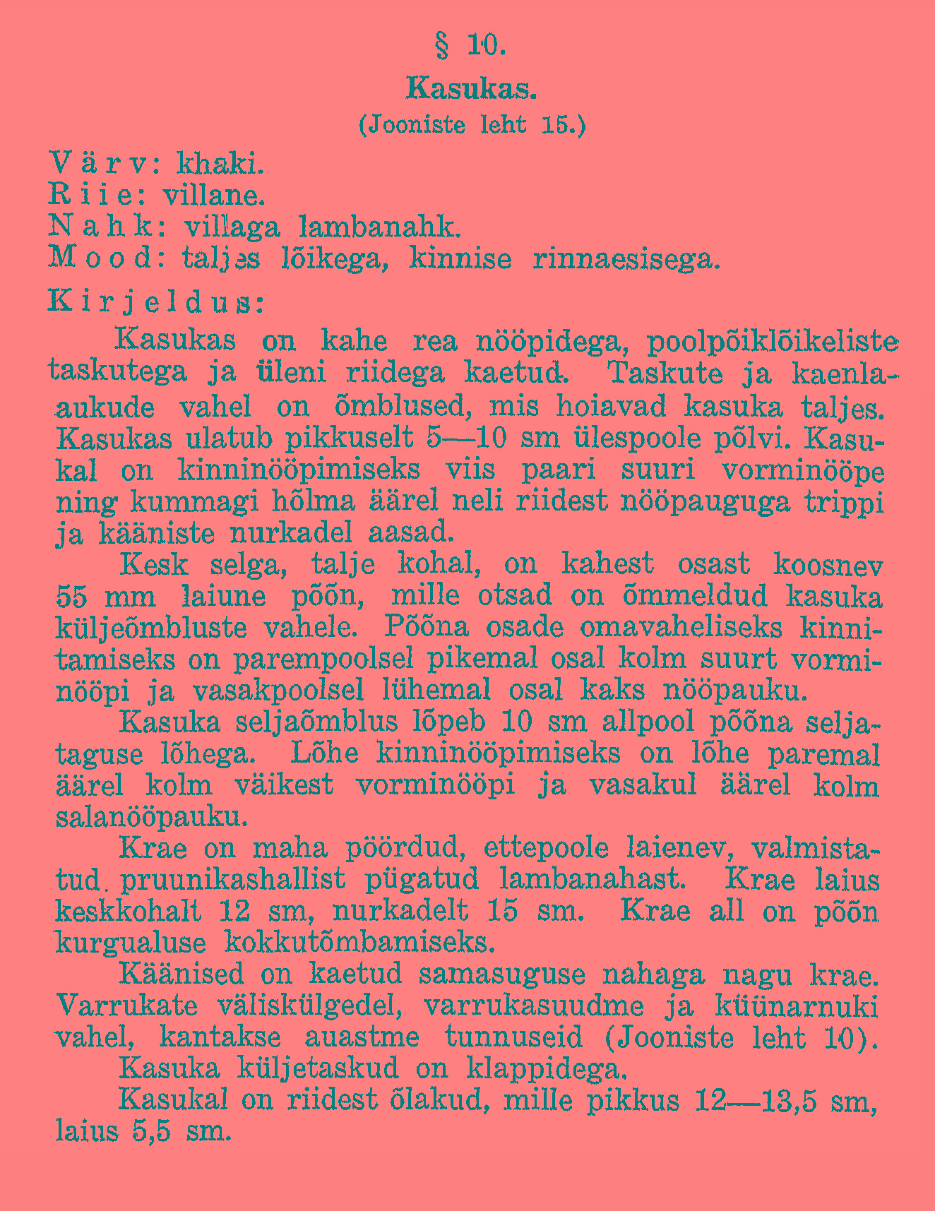 1936. aasta vormikirjeldus annab kasukast järgmise info: