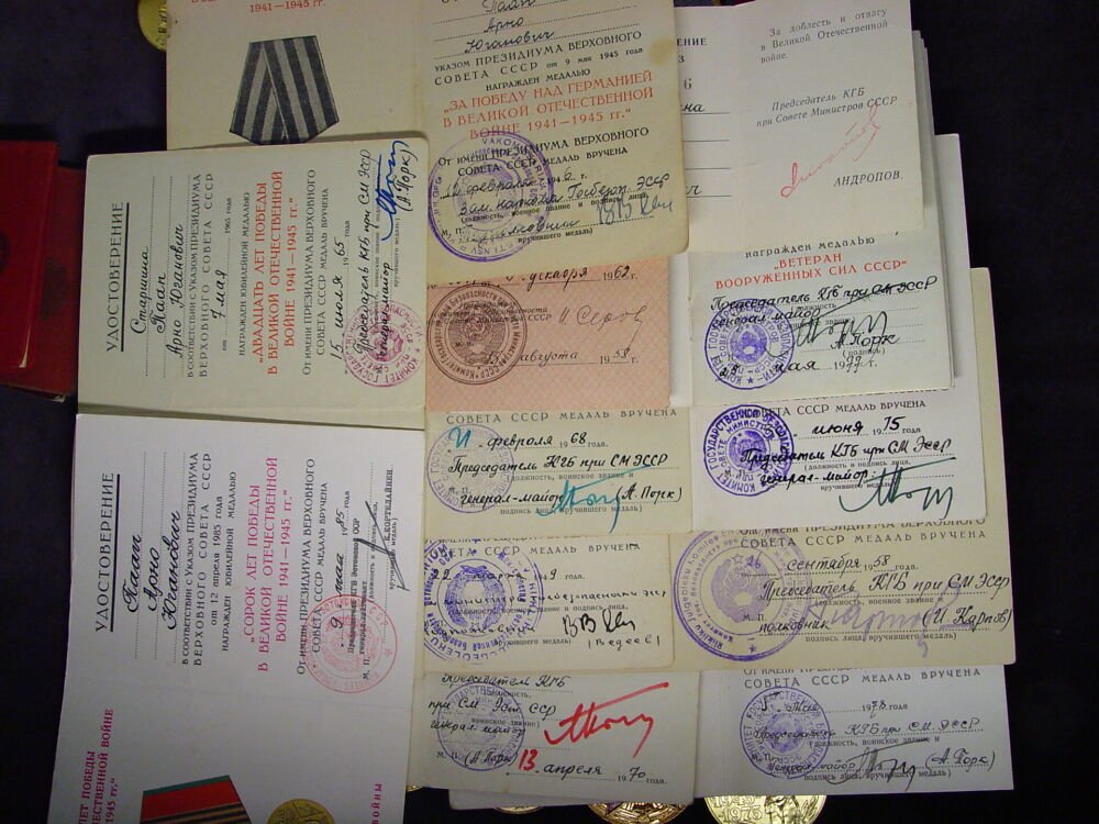 Siin ühe asjast huvitatud inimese kes väga internetis ei käi, pisuke kollektsioon. Sain seda osaliselt pildistada. Meile pakuvad sealt andmebaasi jaoks huvi: Punatähe orden nr. 1480360 ja ilmselt Velikije- Luki ja Saaremaa lahingute eest antud Vapruse medalid 135190 & 1732552.