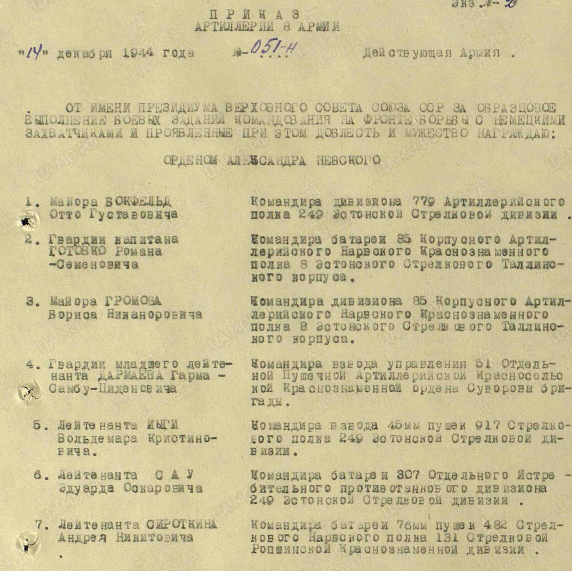 Re: 8. ELK'i Aleksander Nevski ordeni kavalerid ...