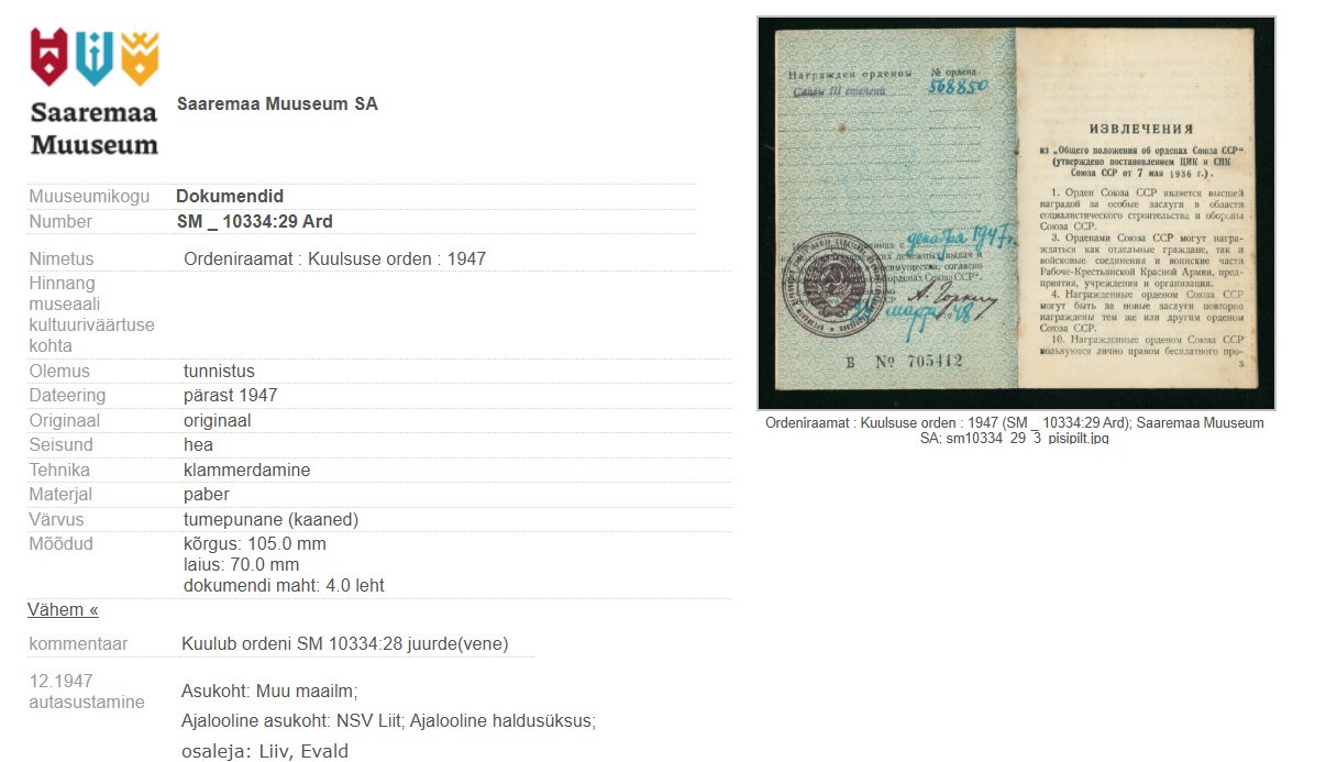 Tundmatu Kuulsuse orden III klass nr. 303485 on siin teemas täiesti olemas, aga Hadjel 303486...kepsuke kirjutas: ↑N Jaan 08, 2026 2:54 pm Sattus kätte selline komplekt.