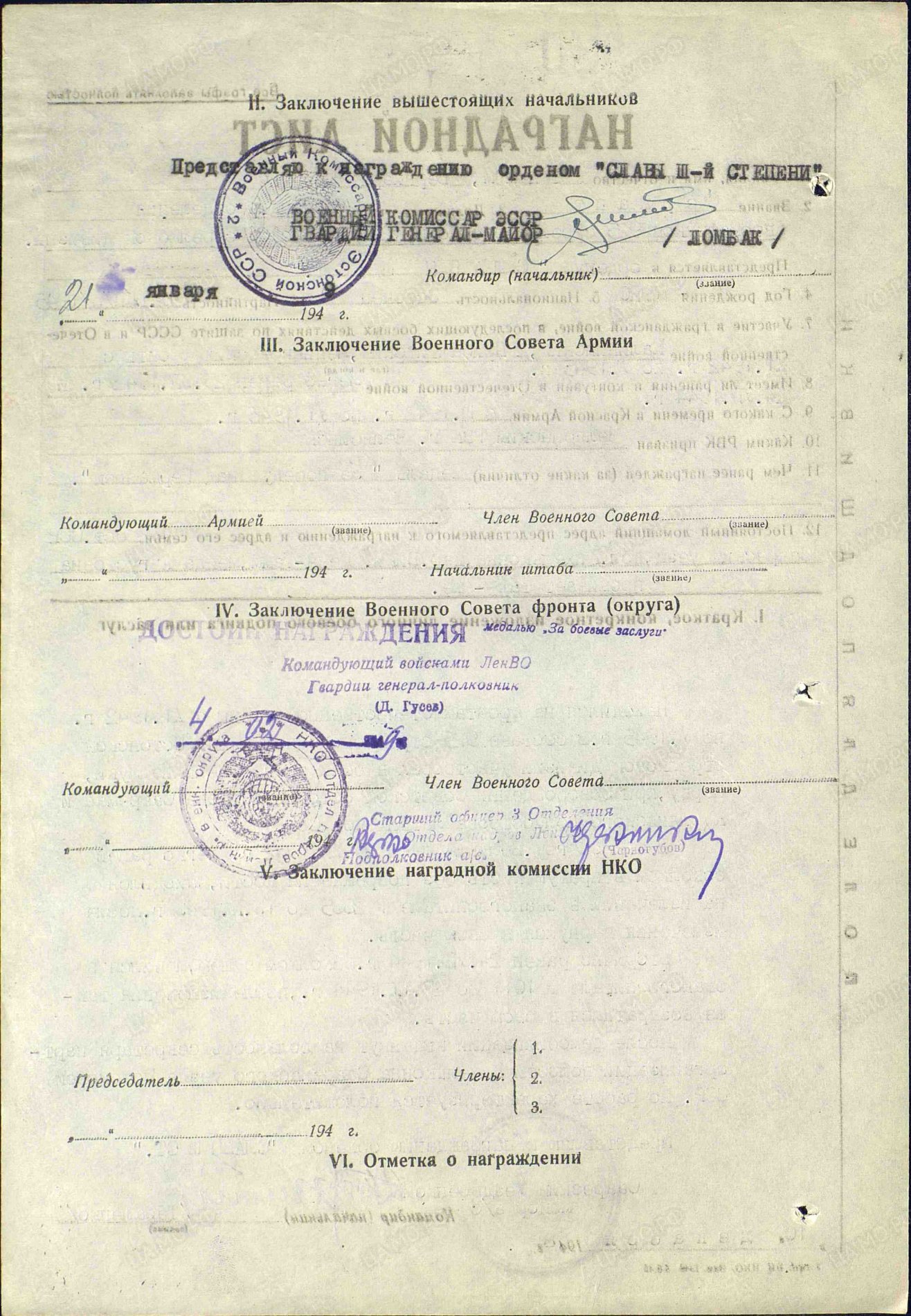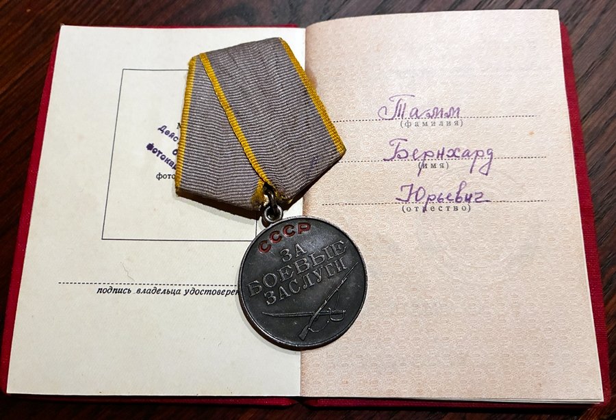 Lahinguteenete medali kavaler Bernhard Tamm, 249. Eesti Laskurdiviisi 925. laskurpolgu automaaturite jaoülem. Esitati Kuulsuse III klassi ordeni saamiseks, aga anti hoopistükkis Lahinguteenete medal.