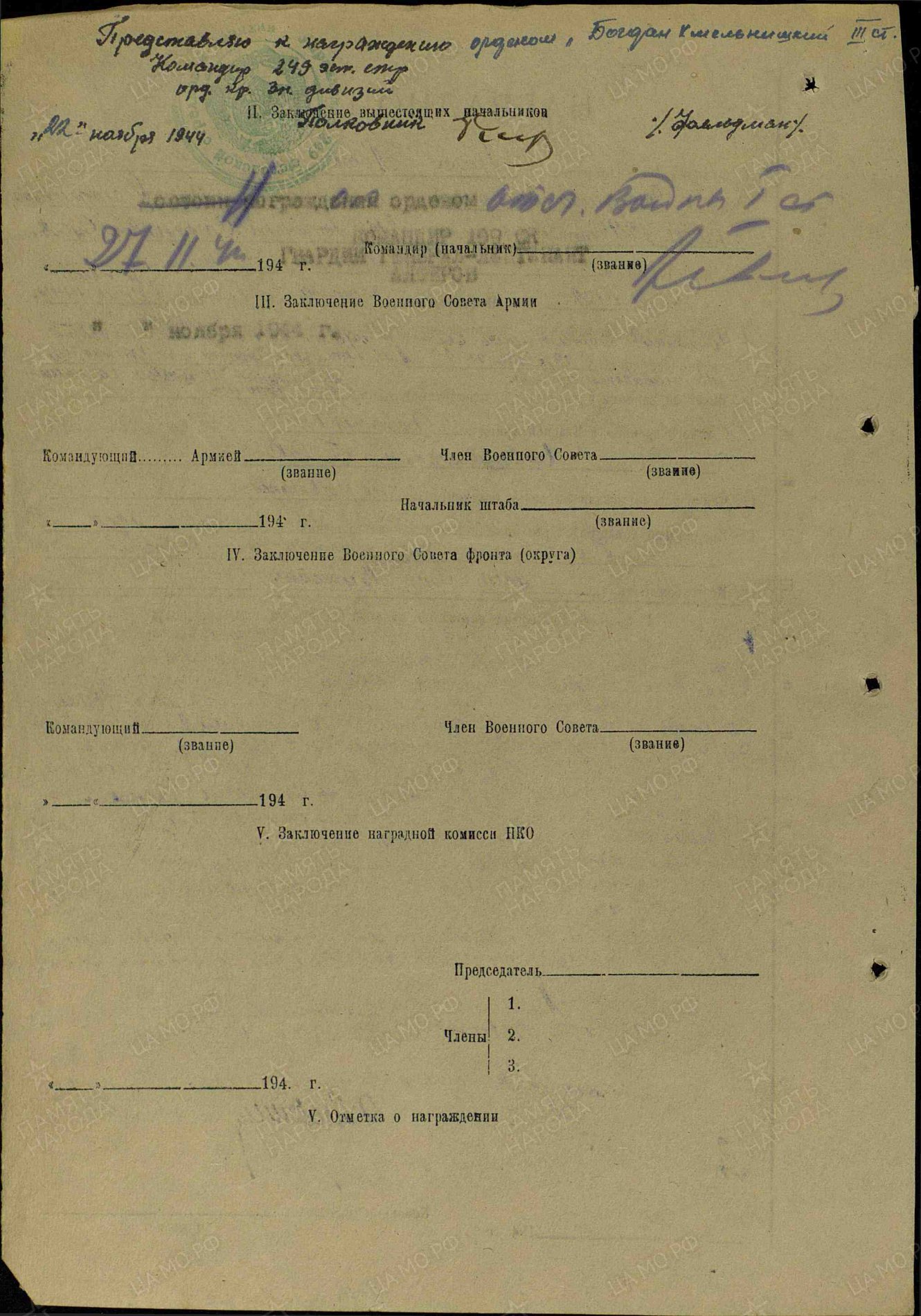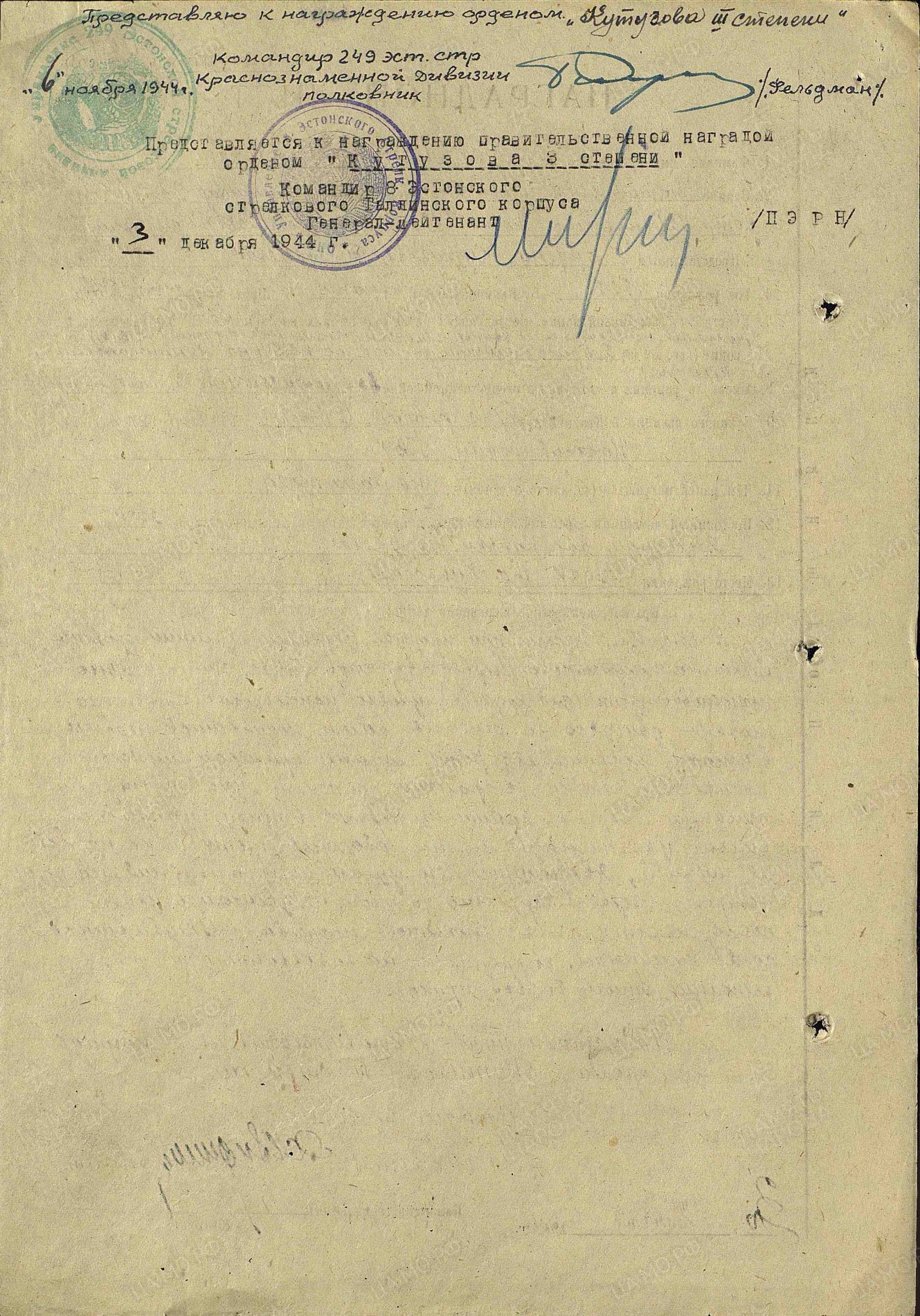 Lahinguteenete medali kavaler Bernhard Tamm, 249. Eesti Laskurdiviisi 925. laskurpolgu automaaturite jaoülem. Esitati Kuulsuse III klassi ordeni saamiseks, aga anti hoopistükkis Lahinguteenete medal.