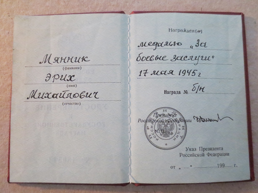 Erich Männik sai enda medali aga hoopis Vene Föderatsiooni poolt kätte