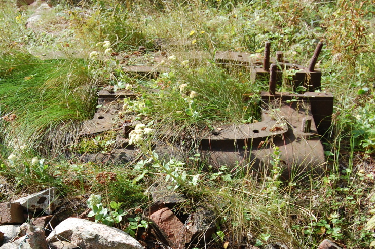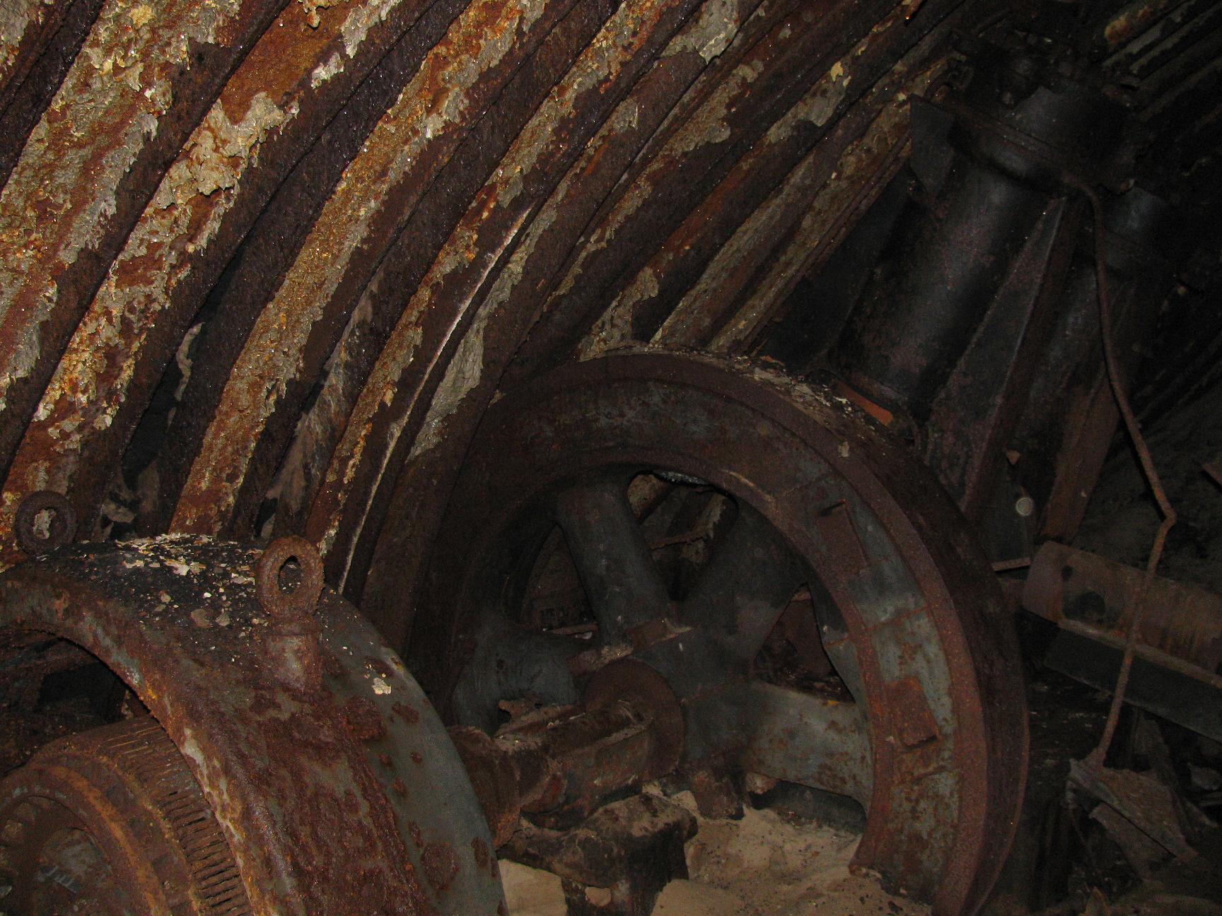 Generaatoriruum. Generaator asetses 1,5-2 m sügavuses augus, praegu on see süvend täis kõikvõimalikku kolu. Uhke disainiga tsaariaegsed kronsteinid. Ja siin on juba peakaliiber, EW patarei No-1.
