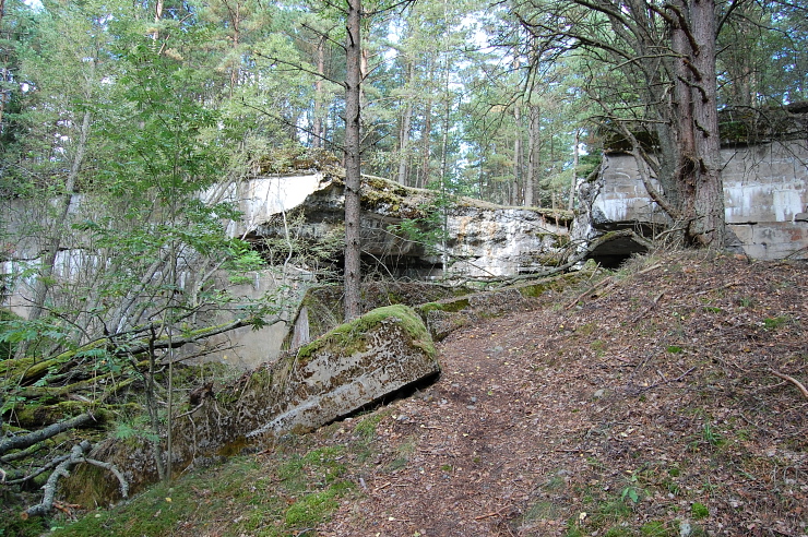 Taamal säilinud lainemurdja, muldkeha on osaliselt mere poolt minema uhutud. Järgmine militaarobjekt on (minu arust veel tsaariaegne) sõdurite kasarm, mis ümberehitatult oma põhivormi siiski säilitanud. Peale järgmist teekäänakut jõuame staabihoone ja ohvitseride kasiino juurde.
