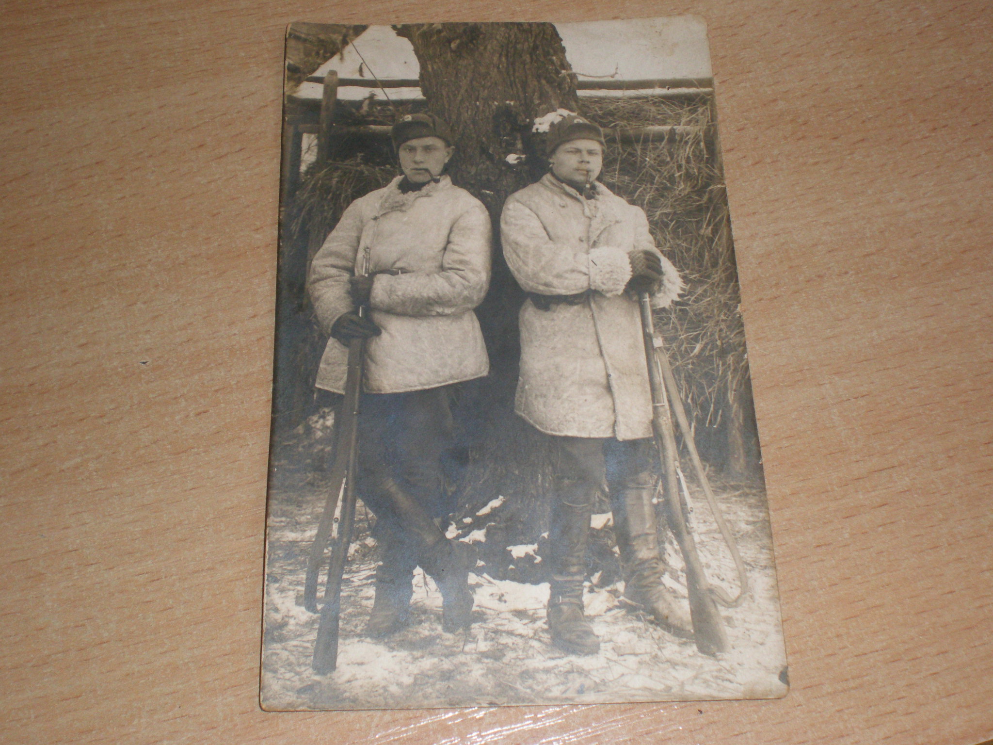 5. pildil vuntsidega, vitstoolil istuv sääremähistega noorsõdur on Hendrik Tusti Jaagu p. sündinud 1900a. 29 aprill(u.k.järgi) Hallistes, Araku talus. Ajaliselt pilt peab tehtud olema peale vabadussõda, sest sellest ta osa ei võtnud. Papa Tusti suri kõrges vanaduses Kullas natuke enne Eesti vabariigi taastamist. Võibolla on teie valduses oleval pildil taga juhuslikult pilditegemise koht ja aeg? Sama mees on ka pidil, kus viis meest teevad puutööd. Tema tahub paremal ääres kirvega plangujuppi. Seda pilti pole isegi meie perekonnaalbumis.