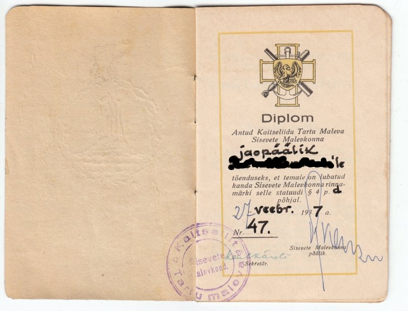 Leidsin vanades paberites sobrades ühe Sisevete malevkonna rinnamärgi diplomi. Tekkis küsimus, kas see märk oli täpselt selline nagu pilt tunnistusel või siis see: