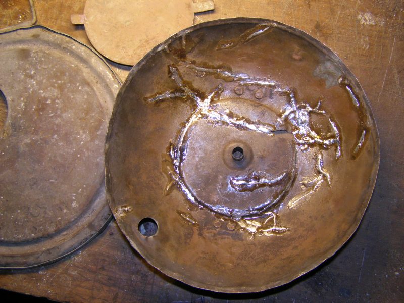 Sai täna suurest igavusest jootetöödega katsetatud ja üks koledamal kombel vormist väljas ja ribadeks tomsoni miin kokku traageldatud. Kõige hullem ei jäänudki aga lapikuks vajutatud asja tagasi vormi ajamine ja servade kokkusaamine oli tõsine peavalu, oleks teadnud et selle jama peale pool päeva kulub poleks vist viitsinudki ette võtta. Paar pildikest siis kah, kahjuks ennem pilti pole kuigi kuskil siiski peaks olema aga hetkel ei leidnud.