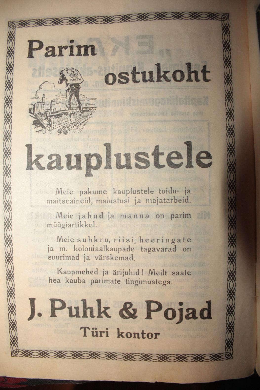 Ostan ja olen huvitatud kõigest mis Teil pakkuda on Puhk & Pojad firmalogoga alles säilinud asju