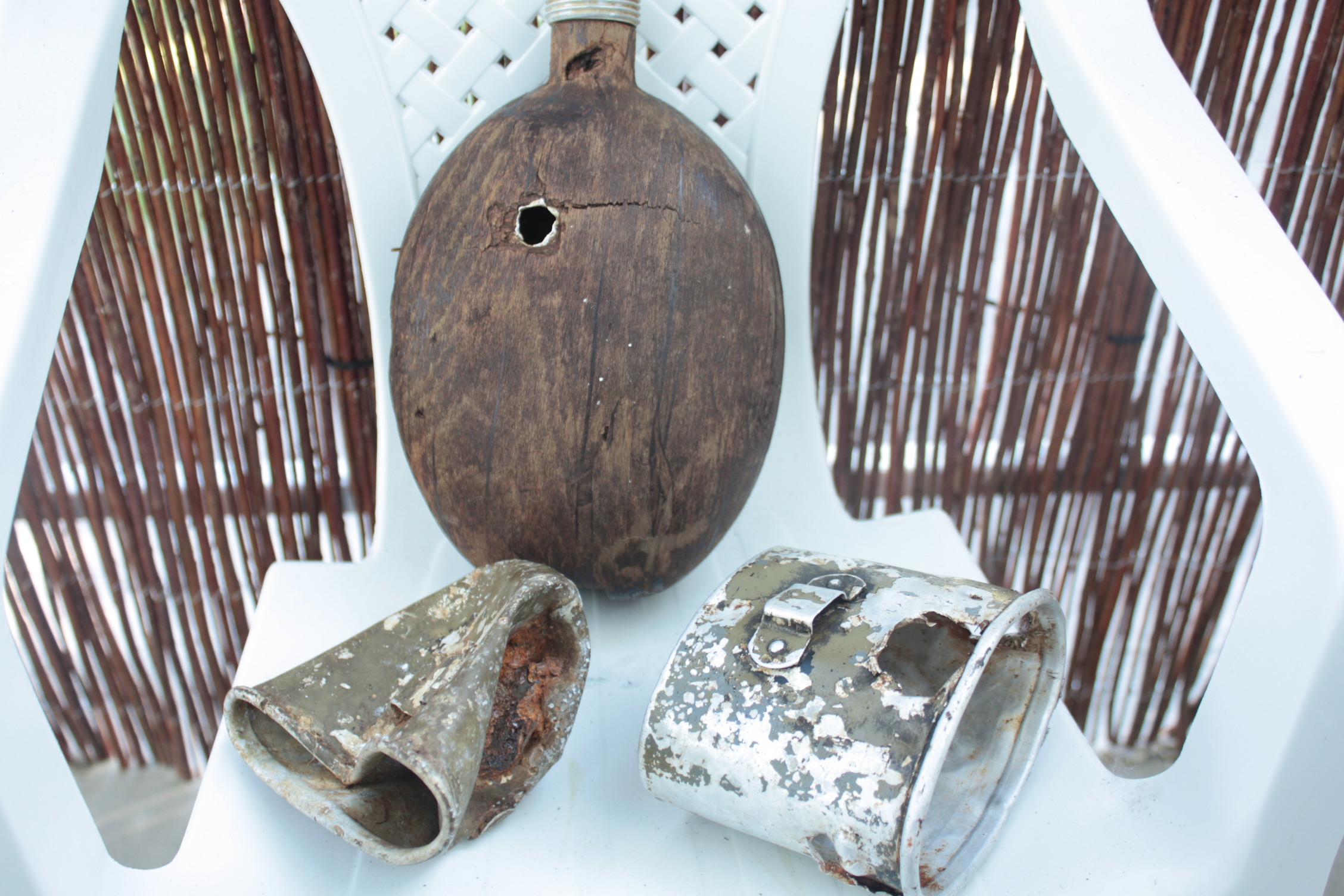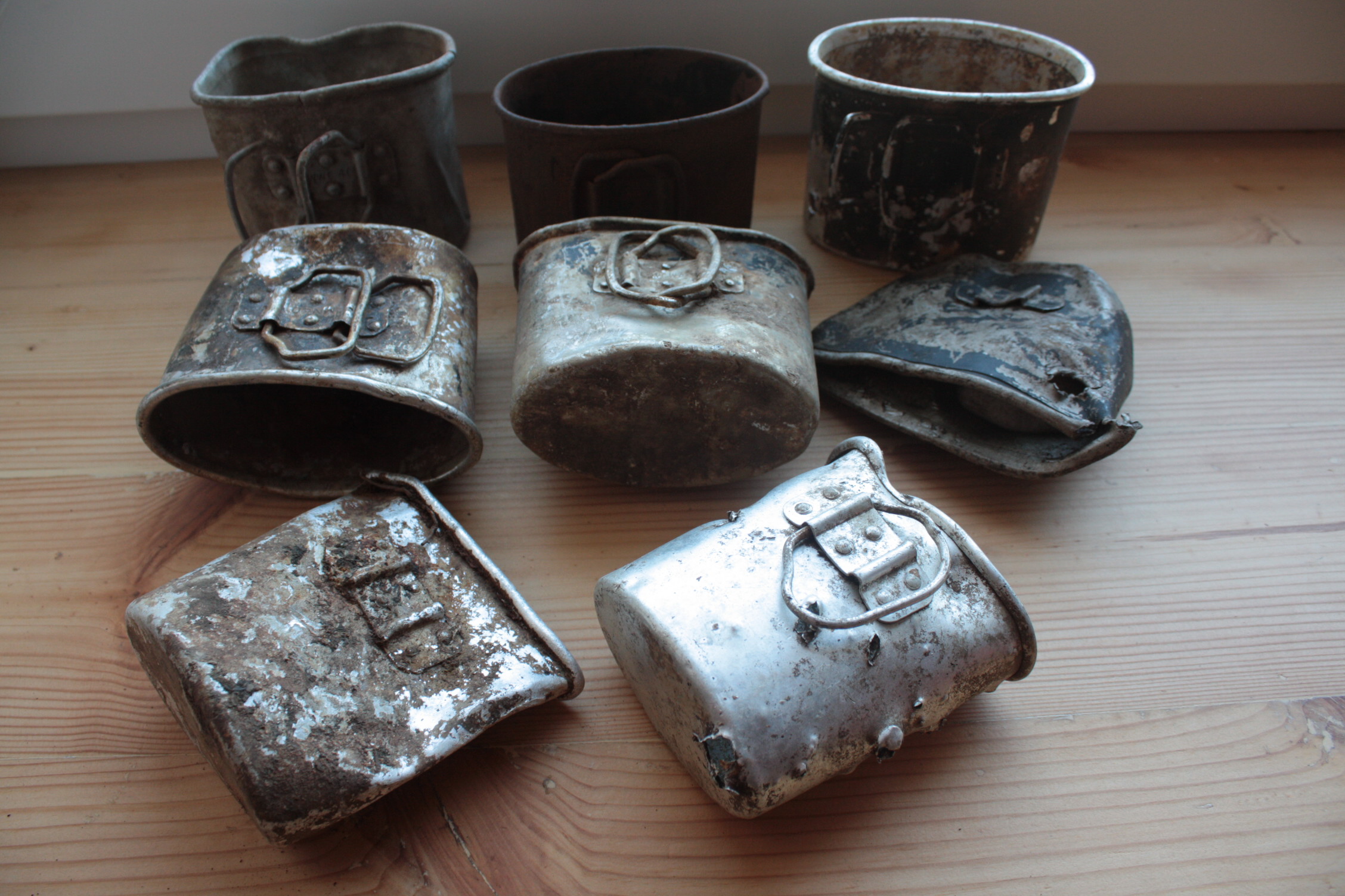 Tuli välja, et neid galvaniseeritud raudpudeleid toodeti ühes Hollandi vangilaagris, WAF-i vahendusel viimastel päevadel kohe hunnikute kaupa kraami nähadivine kirjutas: Vasakpoolne kääbus on samuti mu jaoks uudne vaatepilt, läigib nigu maiteamis! Parempoolne harilikus mõõdus pudel kõrval puhtalt võrdluseks: