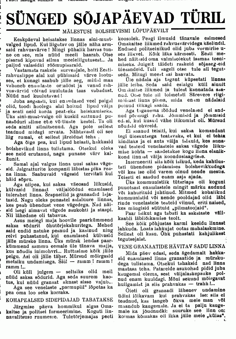 "...Nimekirja järgi otsustades veeti Türilt Venemaale 60 kilohertsine kõrgsagedusvastuvõtja, Marconi saatja juhtkristall, katoodtorud ja mitmesuguseid mõõteriistu (lainemõõtja, ampermeetrid, voltmeetrid) koguväärtuses 29 200 rubla.