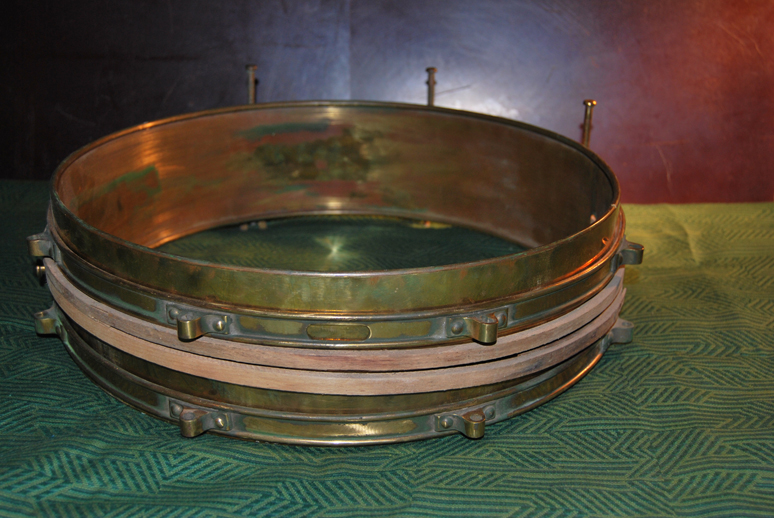 Kui üllas Leonid veel elas, siis nüpeldasin pioneeritrummi. Kindlasti ei olnud materjalosadel märke vasest või mõnest muust värvilisest metallist. Ma orkestripillidega kursis pole, aga tundub, et ka see on olnud miski kanderihmaga kaelariputatav, mitte kaasaegses mõistes trummikomplekti kuuluv sooslotrumm. Ajastut puhtalt väljanägemise pealt pakkuda ei julgeks... kuigi tundub, et värviline metall ja arusaamatud puitvitsad justkui viitaksid aastakümnete hämarusse. Kas guugeldades ei leia midagi pillimuuseumi, orkestritrummi vms. liinis?