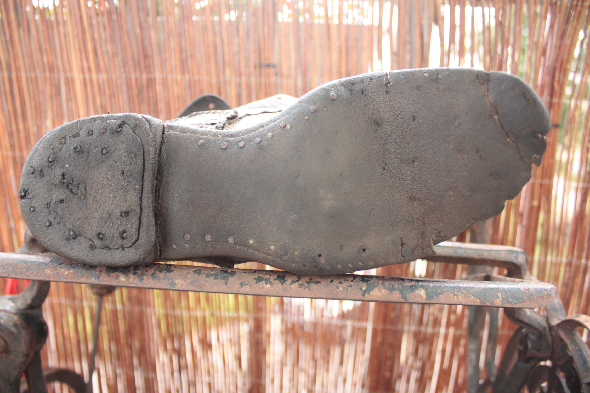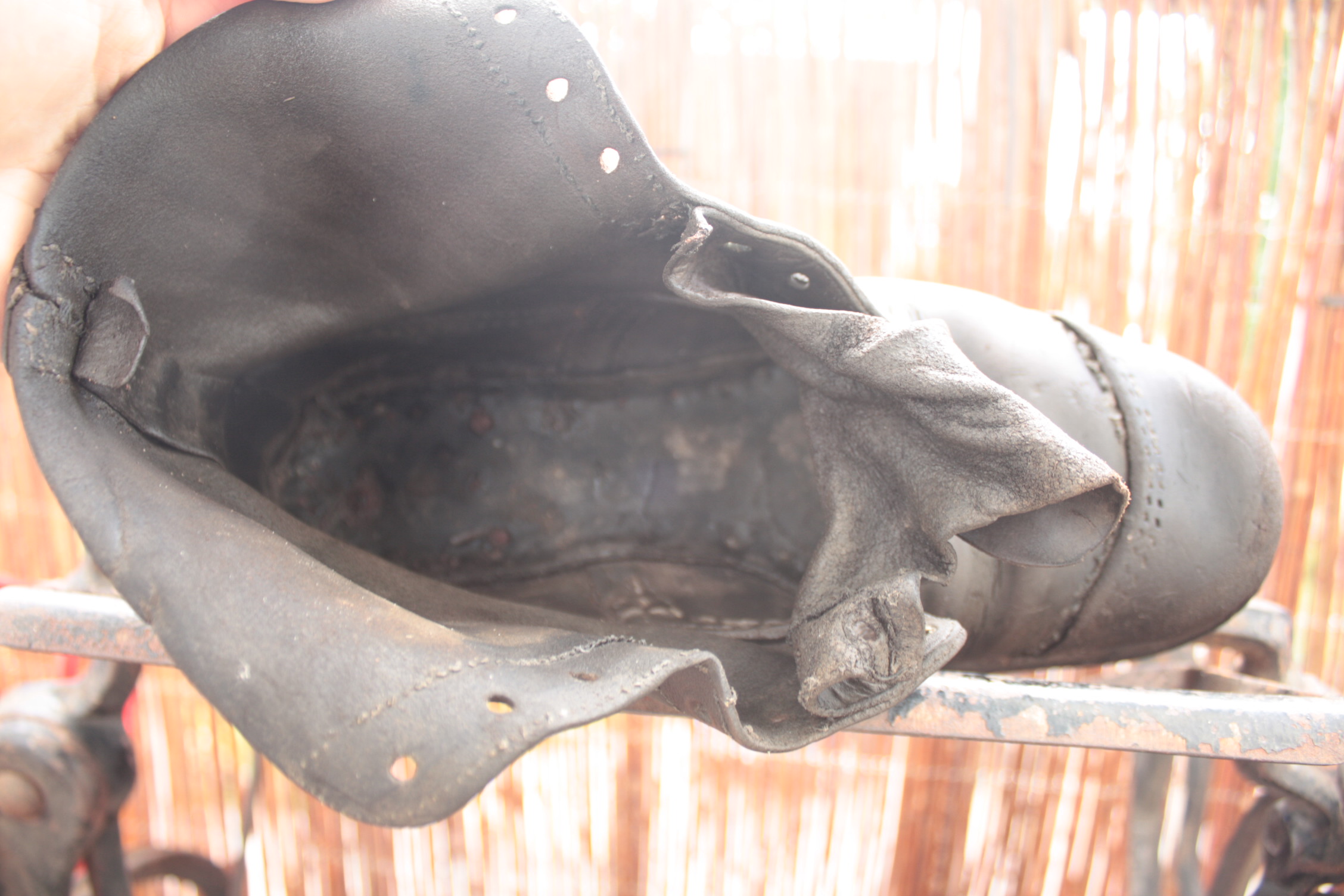 Suvila kõrvalhoone pööningult olen aastate jooksul ära tassinud saksa raadiojaama jäänused ja WaA märkidega hobuseriistade detaile, erinevate relvade jupikesi, tsaari- ja Vabadussõja aegset paprekraami, tsiviilkribust rääkimata. Ühte saabast olen alati ühest nurgast teise pildunud, sedapuhku vedas närvikava alt ja tõin rappe kaasa. Ninaõmblus ja peale pesemist nähtavale mitteilmunud markeeringud välistavad minu nappide teadmiste kohaselt saksa päritolu. Talla all oleks nagu näha naelte jäljed... Kas lihtne töömehe jalats või siiski Marsi sulase kabi?