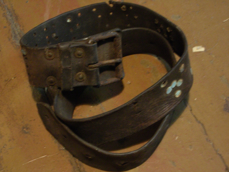 Soome armee rihm. Sõjaaegne. Peale needitud nimi. Leitud Eestist. Mälu järgi oli vist seos metsavennaga. Nahk pehme aga pannal roostes. Ca. 95 cm. 3.-