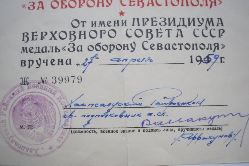 Sooviks näha eestlastele antud linnade kaitsmise/vabastamise medalite tunnistusi - tossomil kindlasti on?