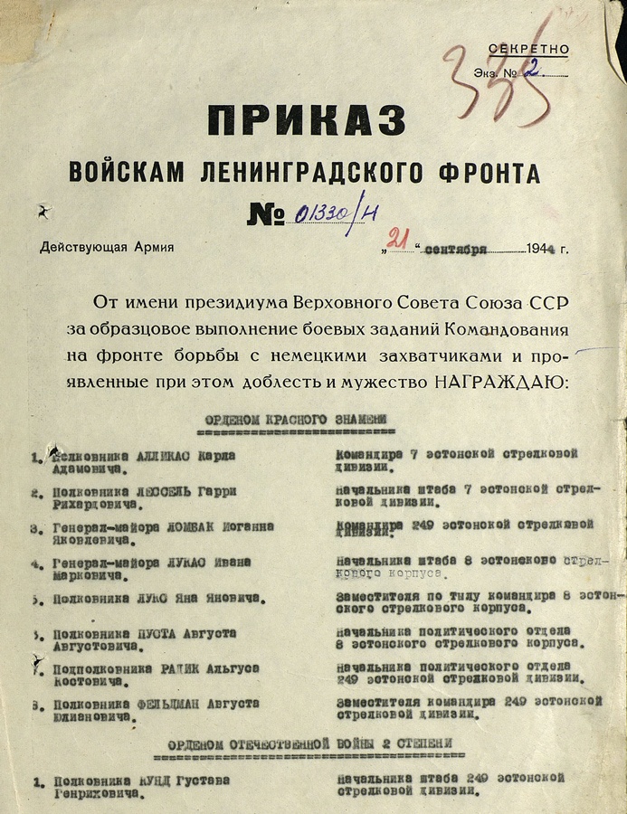 polkovnik Gustav Kund, 249. eesti laskurdiviisi staabiülem. Isamaasõja I / II klassi, Punatähe ordeni ja medali 20 aastat tööliste / talupoegade punaarmeed kavaler.