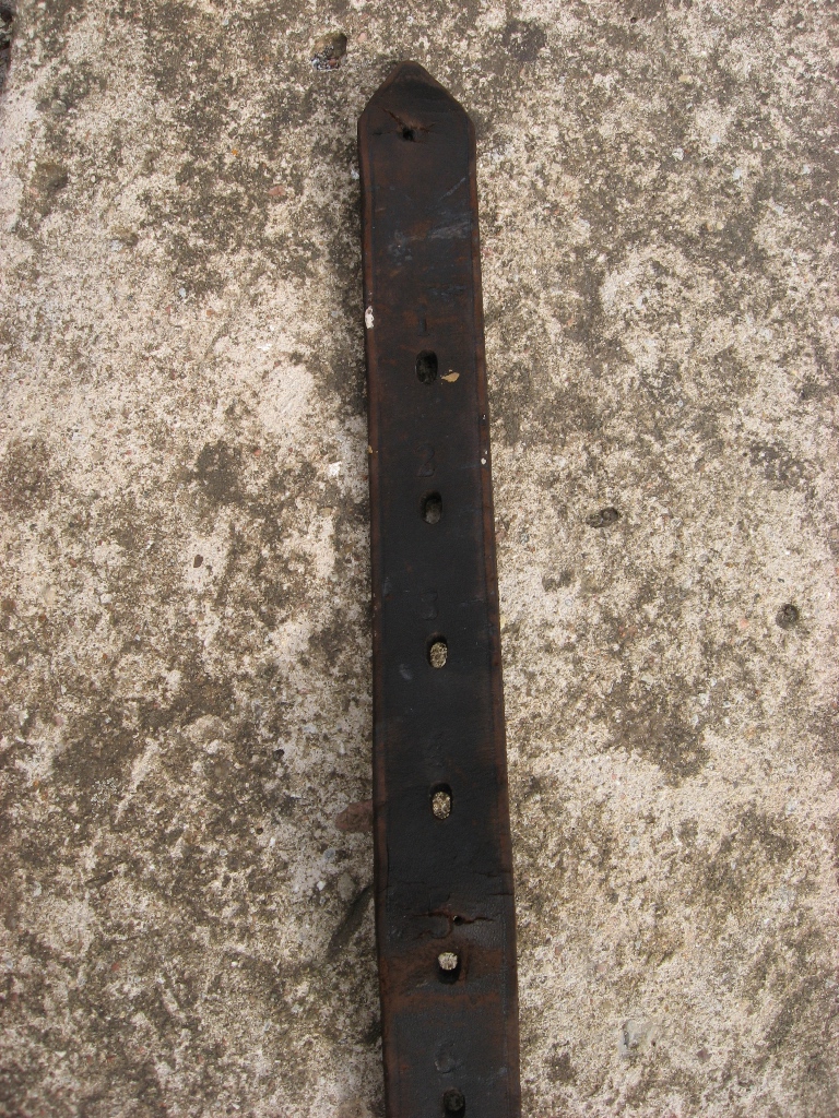 Kmr. tõi Aunaste laadalt kasti , mille sisse naeltega löödud üks rihmajupp. Originaalis ta sinna ei kuulu. Rihma pikkus mingi~80cm ja aukudel numbrid 1-13.