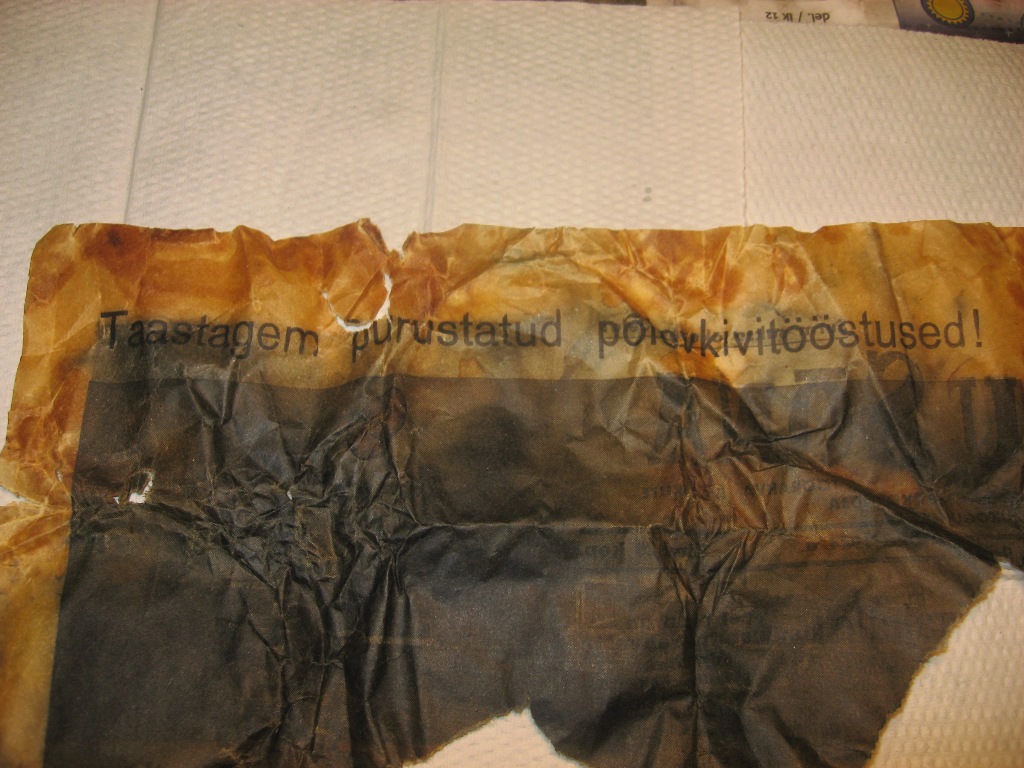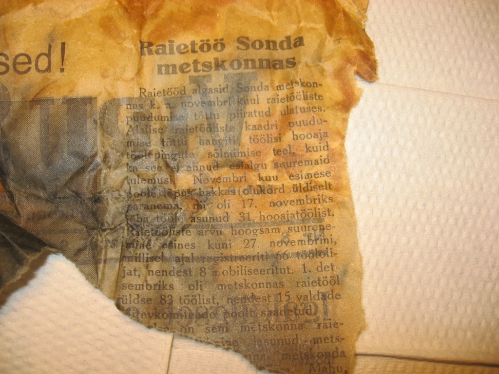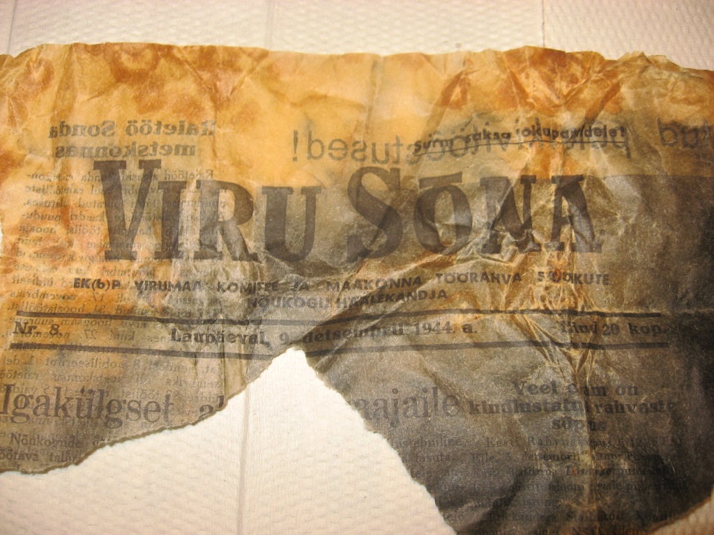 Hetkel sisaldab mingit salvi. Peale kirjutatud käsitsi: Reuma salv. Mis seal originaalis sees võis olla? Kas kasutati inimeste putitamiseks? Topsis tropiks tükk ajalehte VIRU SÕNA Laupäev 9. detsember 1944a. Artiklis Raietöö Sonda metskonnas , kommaritel mure et metsatöölisi vähevõitu.