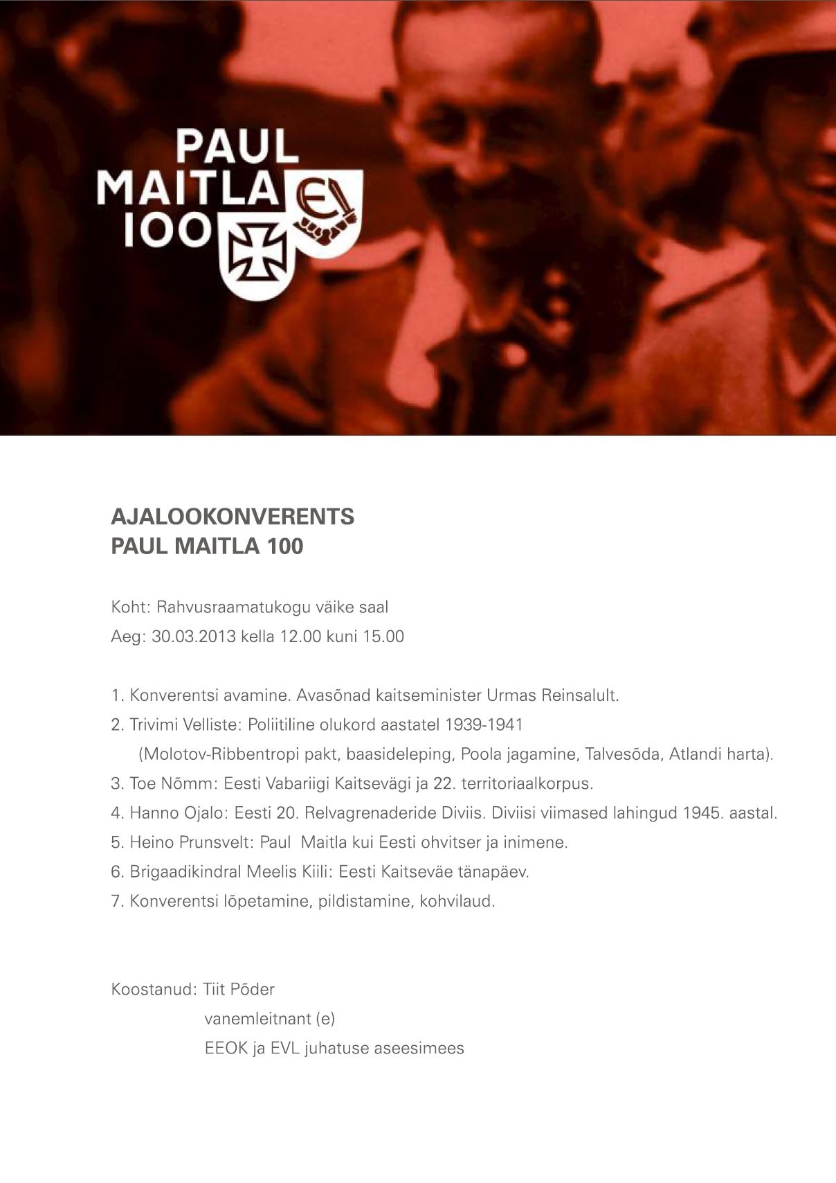 Re: Ajalookonverents Paul Maitla 100 ...
