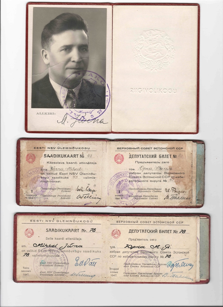 Huvitavad dokumendid. Riigivolikogu liikme tunnistus, Ülemnõukogu I ja II teise koosseisu liikme tunnistused ja muidugi fotod, aga erilist tähelepanu väärivad minu meelest NSVL Ülemnõukogu VII istungi pilet, mis on antud Eesti Riigivolikkogu täieõiguslikule liikmele osalemaks istungil ja kutse 10. Augustil 1940 Kremlis toimunud vastuvõtule.