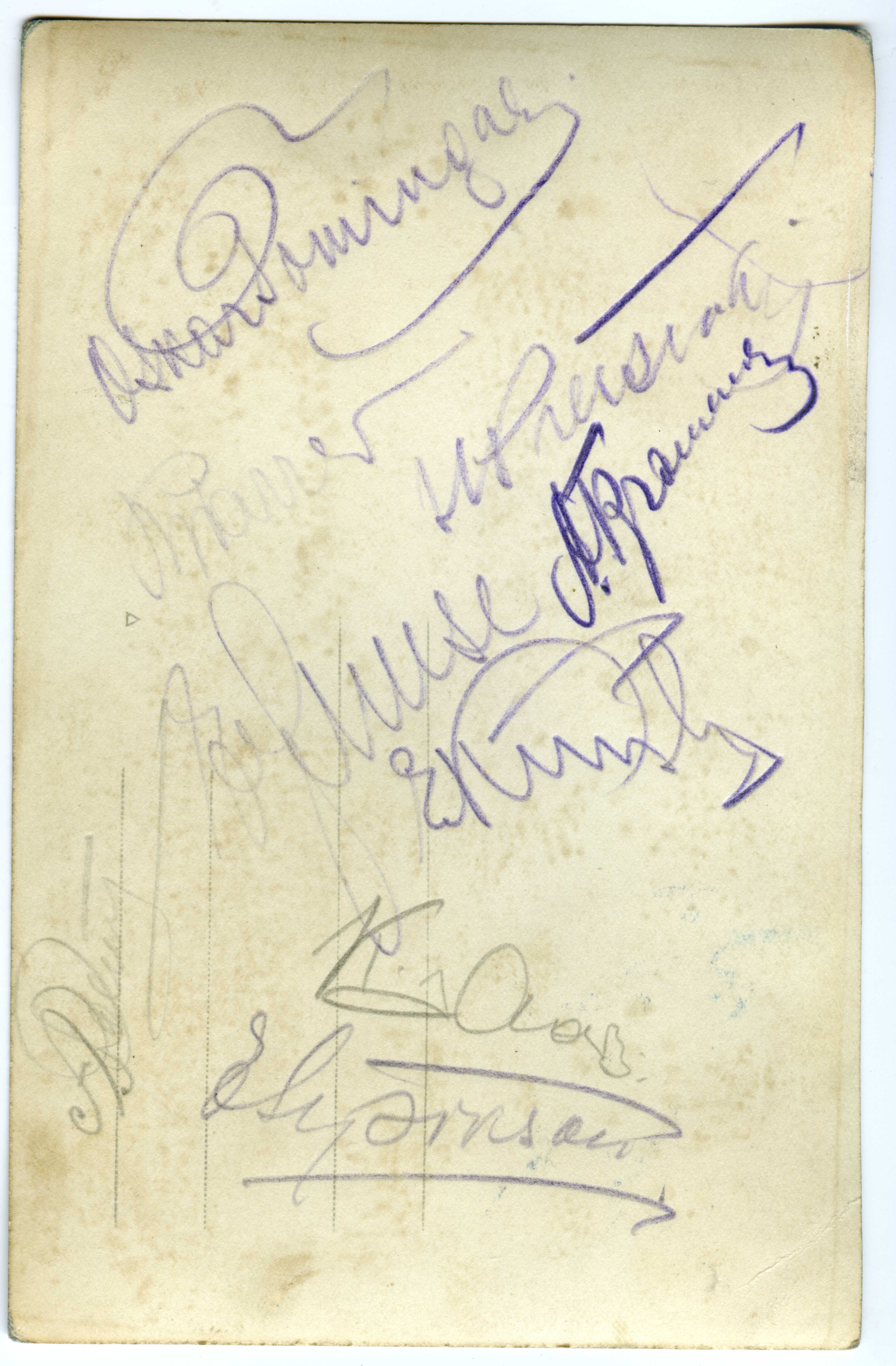 Üks pilt liikmetest, ilmselt Narva piirkond. Pildi taga ka autogrammid, ehk suudab keegi mõne neist meestest tuvastada?
