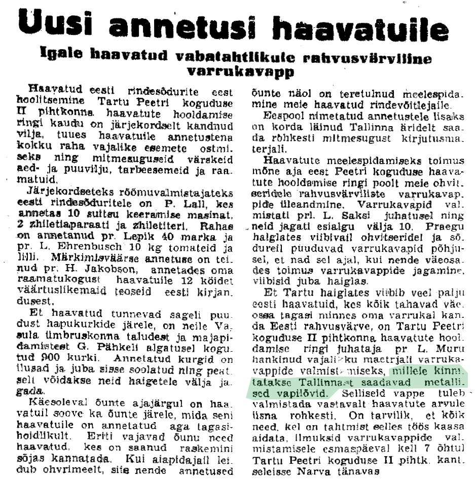 Nagu 2. augusti ajaleheartiklist võib lugeda, valmistati vapilõvisid Tartus Petersoni metallitehases.
