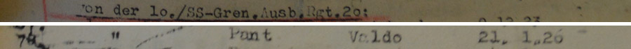 Saad sa tuua ära kogu nimekirja nendest, kellega Pant koos oli?uscha kirjutas: Dokument, millest tema nimi läbi jookseb on koostatud 20.07.1944 ja sisuks on nimekiri meestest, kes 18.07.1944 käsuga on 20. SS tagavararügemendi juurest suunatud 11. SS diviisi "Nordland" väli väljaõppepataljoni.