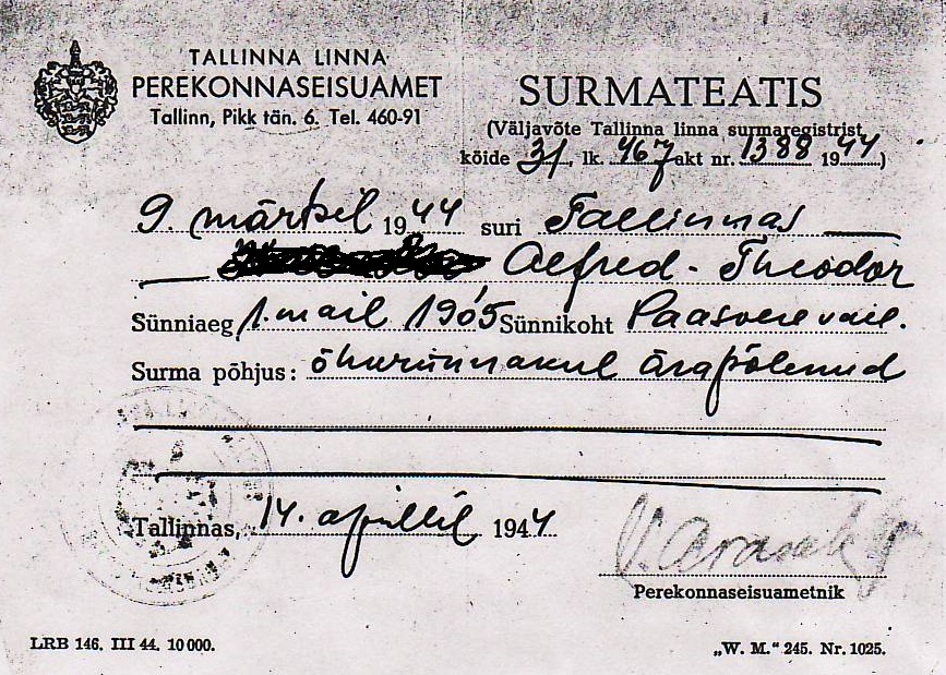 Vanaisa sai nimelt märtsipommitamises hukka ja elukoha aadress oli sinna märgitud