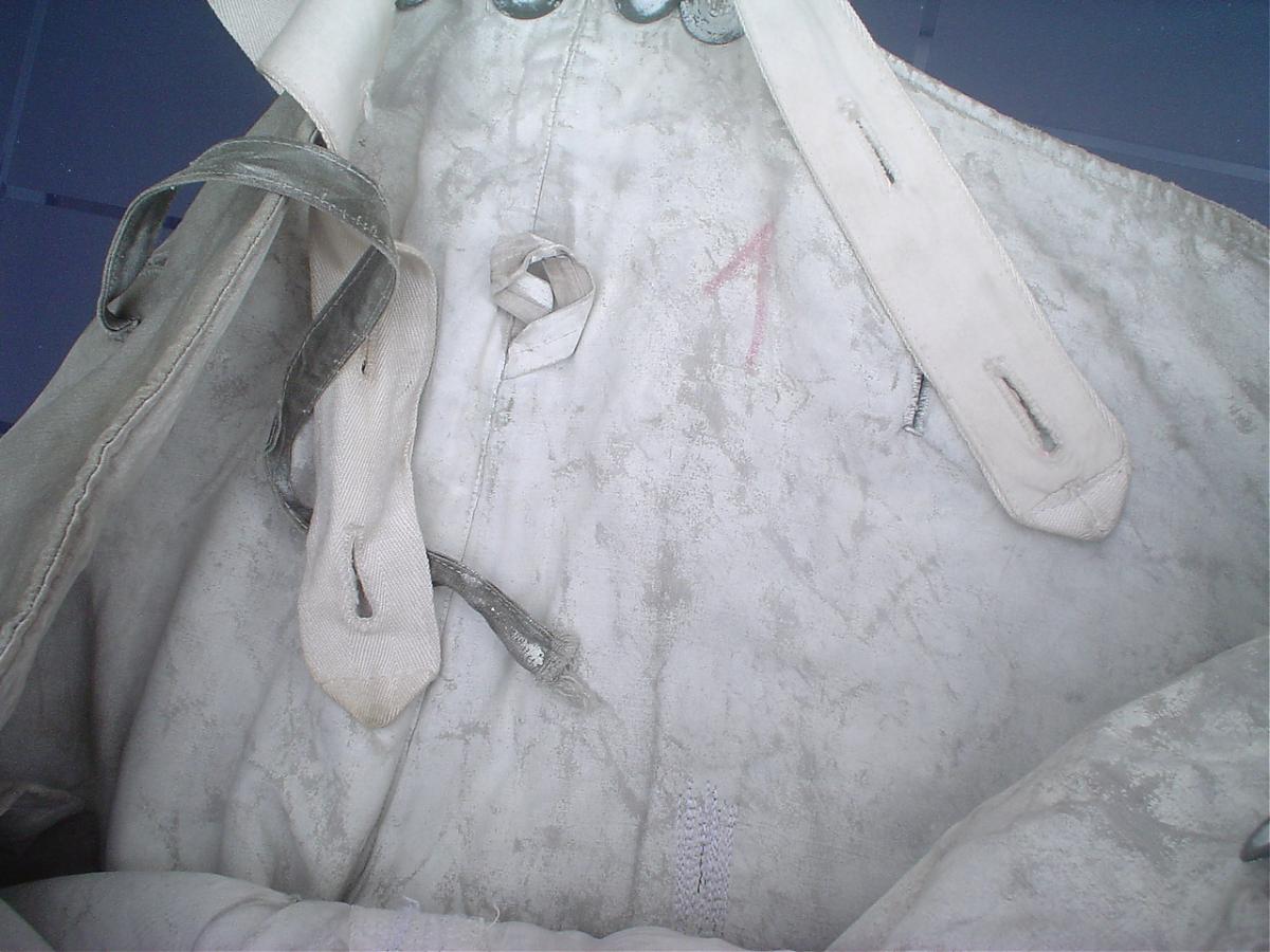Parkakomplekt suurus nr.1 Pükstel sõjaaegsed parandused ja valge pool üle värvitud. Traksid ja tagumine pingutuspael olemas. Ülevärvimist esines rindel tihti kui määrdunud poolt taheti värskendada. Parkal tihti puuduv vööpael sees. Heas korras.