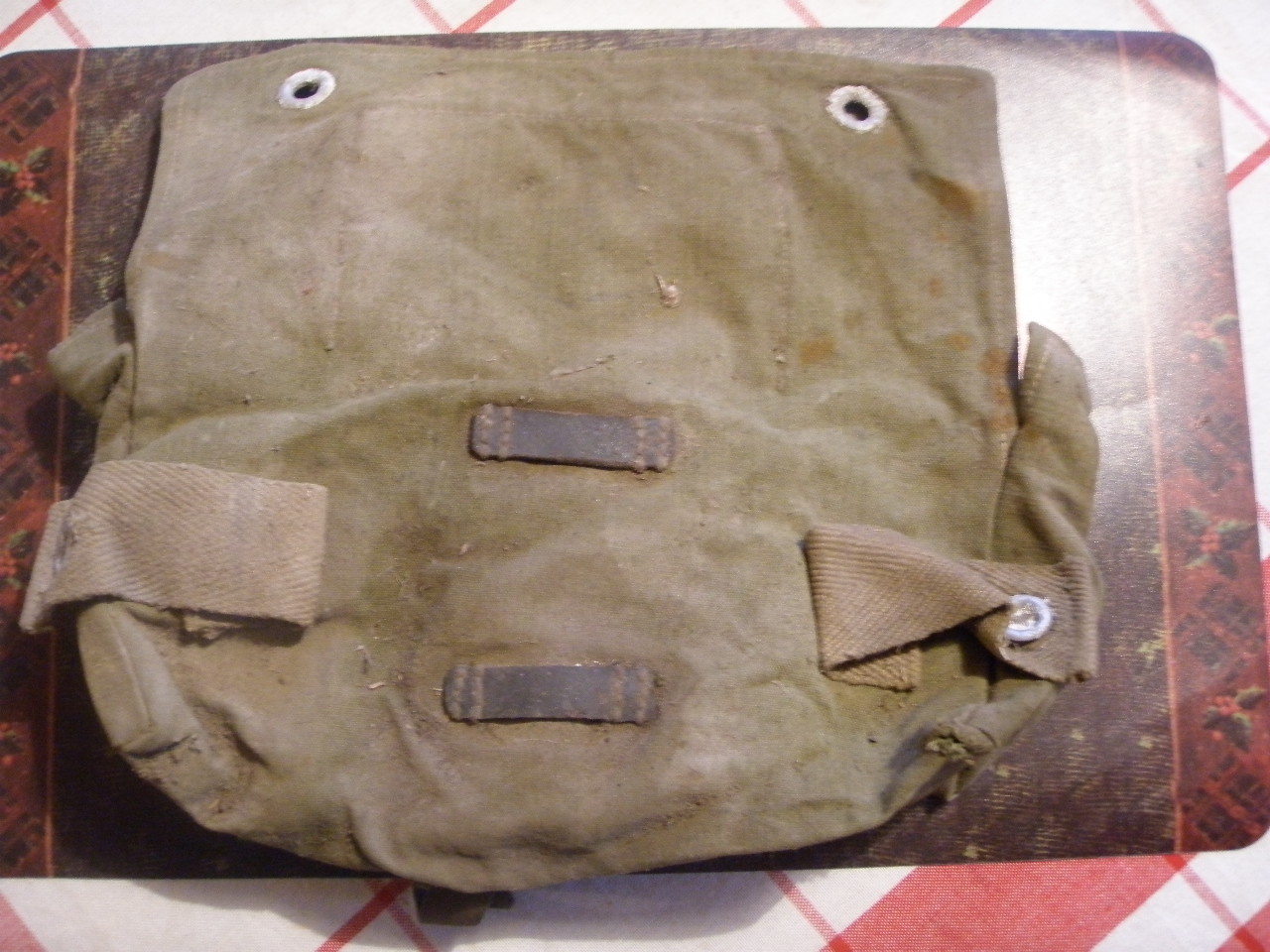 saadud siis selline imelik kott. kas tegu suus saksamaal toodetud leivakotiga. nööbidl mõlemal küljel al. võitoosi sahtlit hoidis nahkrihm vist kinni. aidake kes oskab.