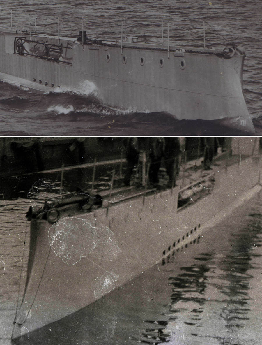 Üks võrdluspilt veel. Eelmisel nädalal tehtud pildil on näha, et suurem osa allveelaeva välisest kerest/korpusest on hävinud, alles on ainult väike osa ümber torni.