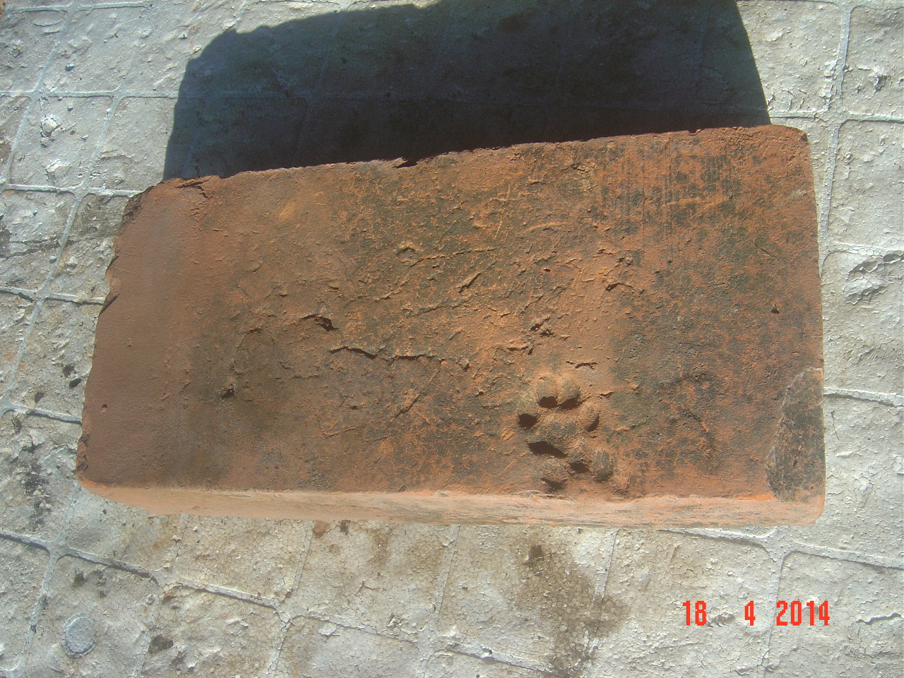 I found this cracked brick in Sigulda region where formerly there were manor buildings. The brick was a part of an old greenhouse' brick wall but maybe formerly it served for a different purpose.