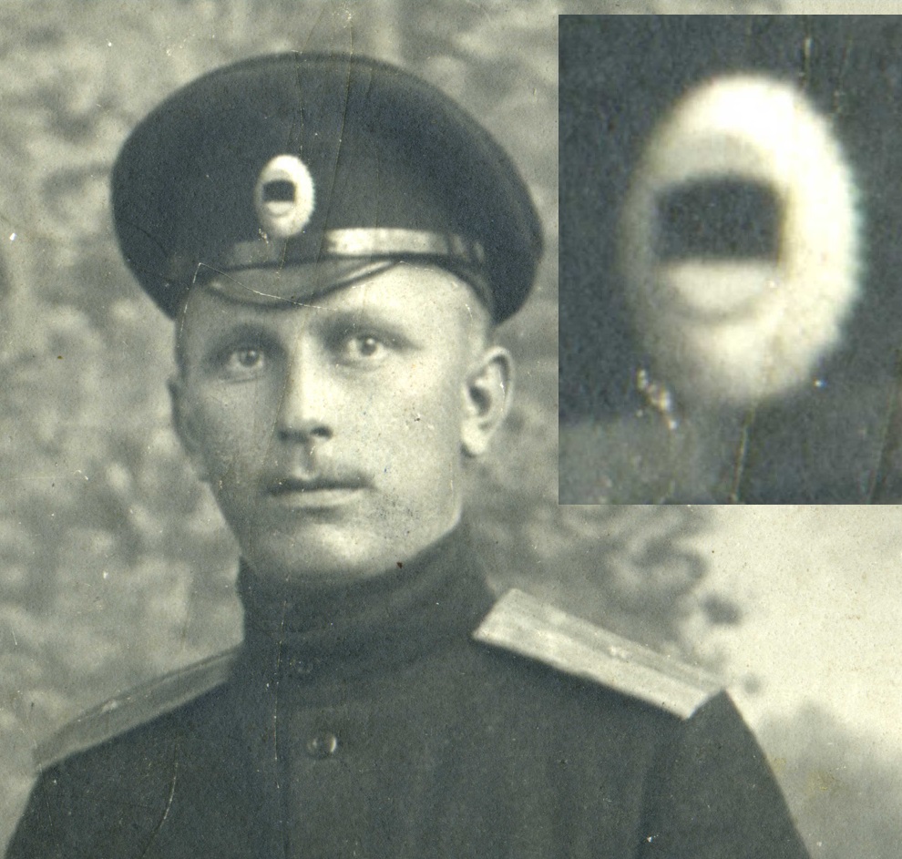 Huvitavaks teeb foto sinimustvalge mütsimärk. Ilmselt omalooming, tehtud tsaariaegsest mütsimärgist.