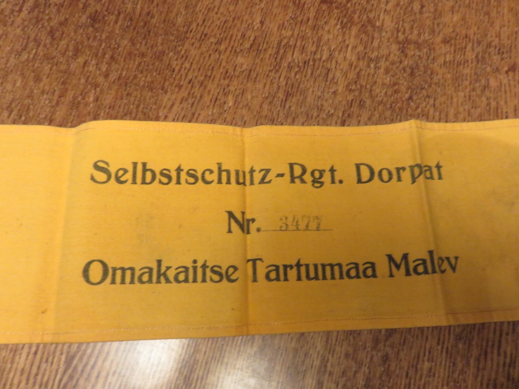 Omakaitse Järva Maleva lint Järvamaa muuseumi kogudest (pilt muis.ee vahendusel).