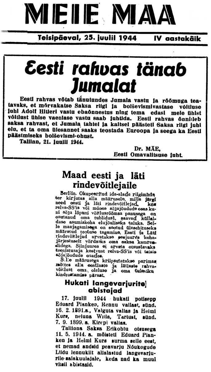 Hiljuti linastunud film ("1944"), samuti superleid Raplamaalt ajendas uurima, millises mahus ja kuidas kajastati vahetuid sündmusi Narva ruumis ja Eestimaal tervikuna kohalikus ajakirjanduses!