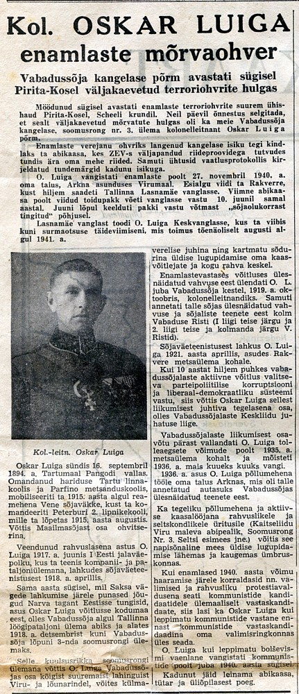 Oskar Luiga hauatähis Kaitseväe Kalmistul.