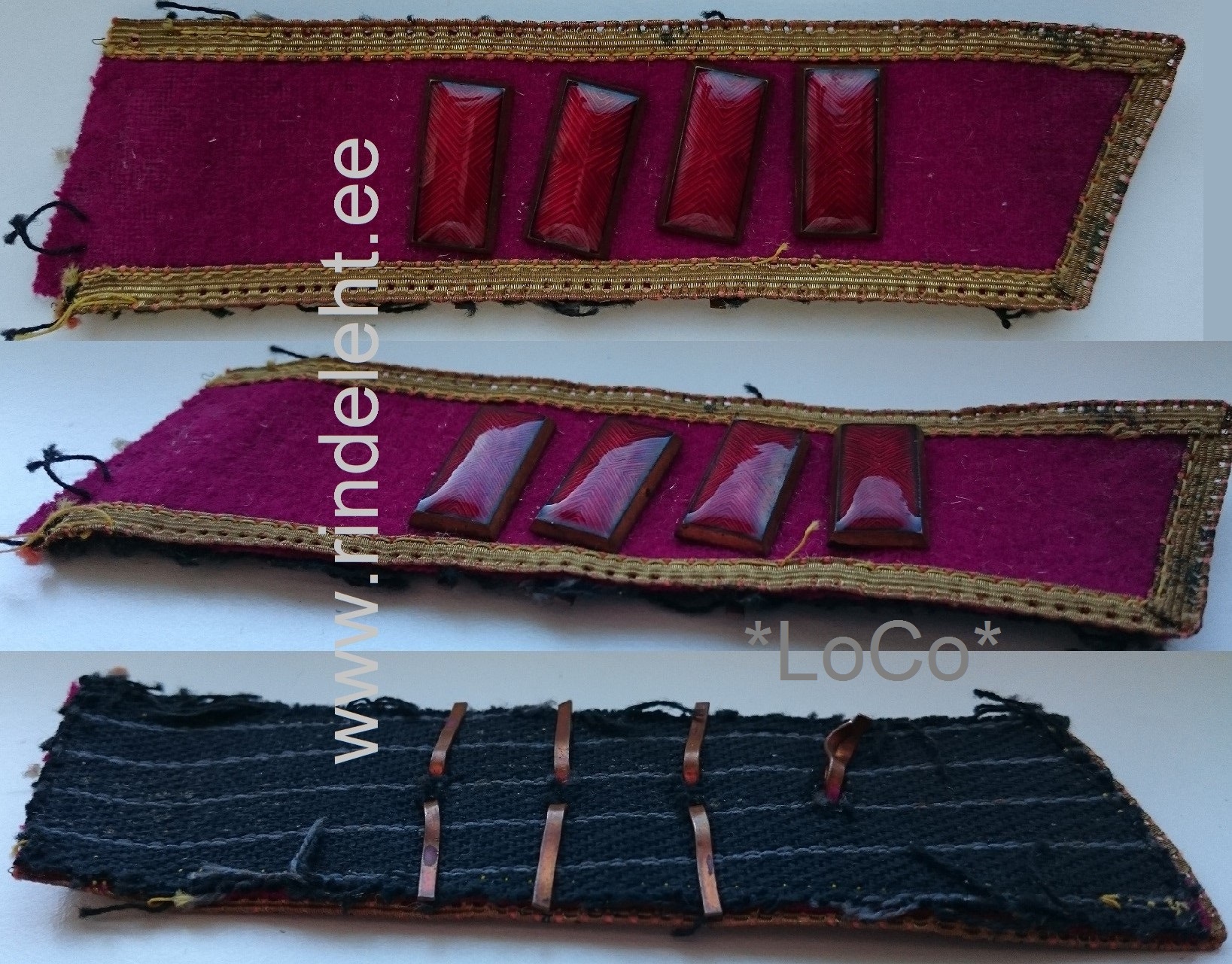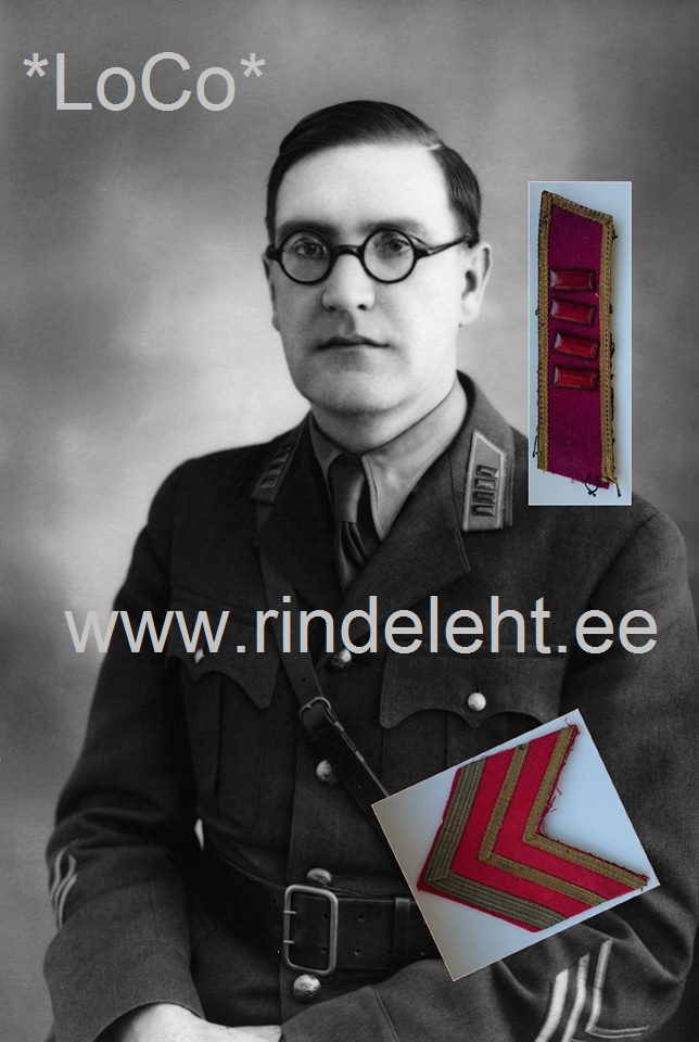 Siin on tema vormitunnused. Selgelt on näha, et kohalik töö. Tundub, et on kasutatud EW auastmetunnuste linte ja ka EW khaki värvi kangast.