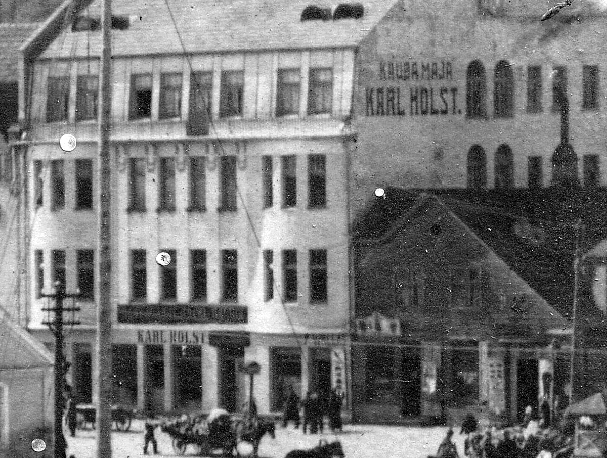 Vasakul ääres asuv majanurk, meenutab Rüütli tänaval asuvat endist linnaraamatukogu.