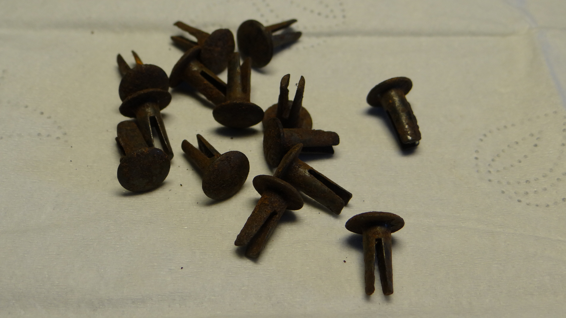 Teisi ei tea aga kolmandad paistavad olema needid, millega kinnitati kiivrivooder metallvitsa külge.