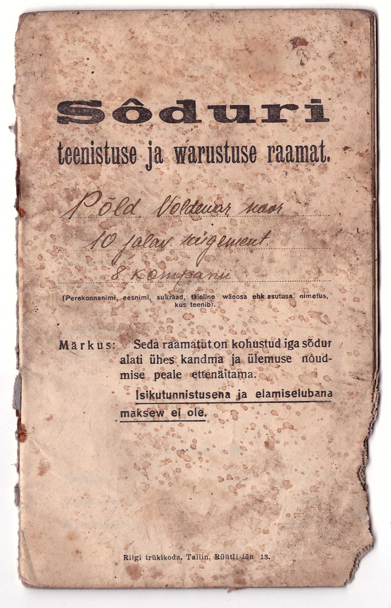 Sõduri teenistuse ja varustuse raamat.Mõni lehekülg ka sellest.