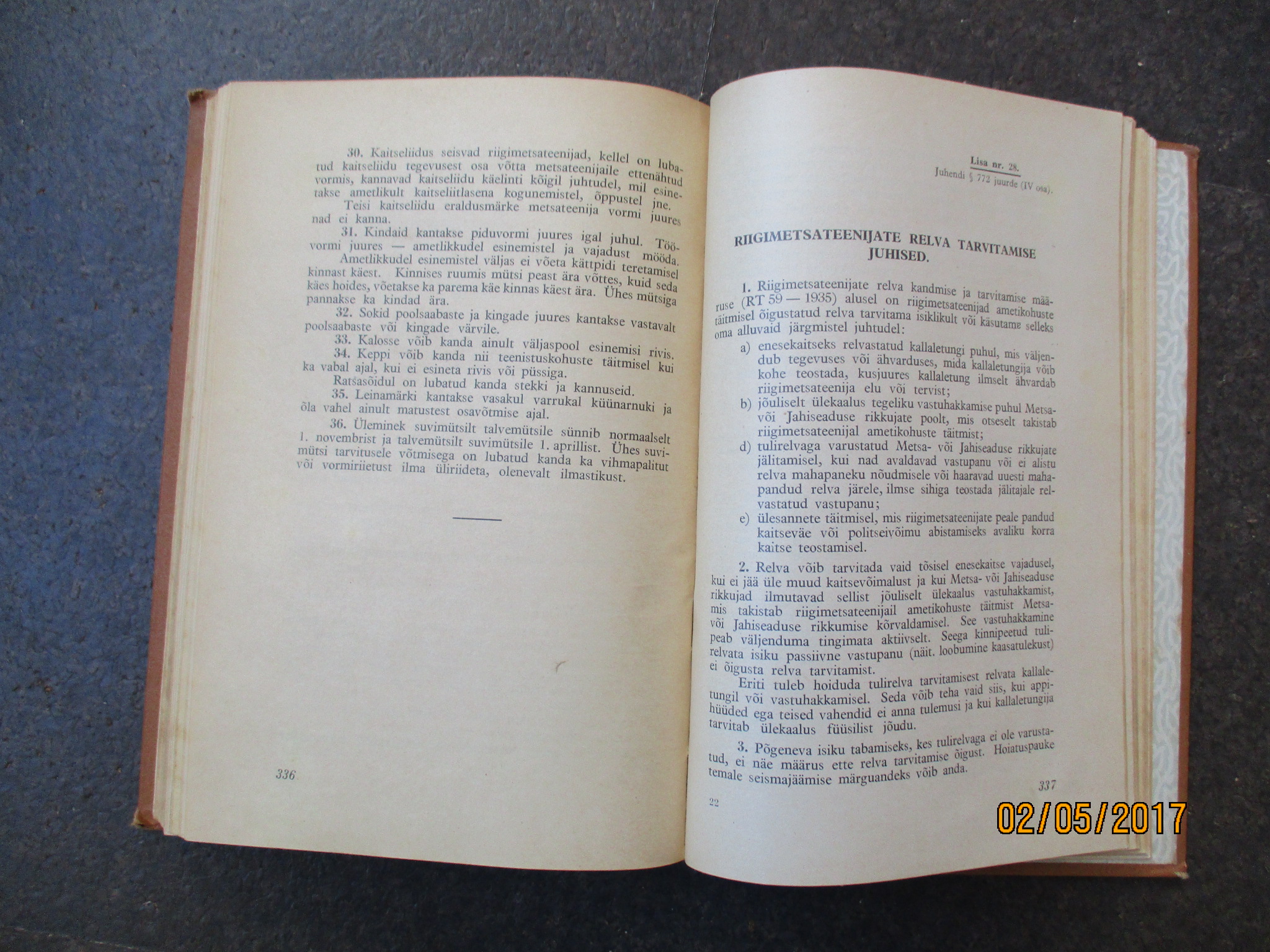 Mind huvitaks mis relvi ja kuidas tolleaegsed metsavahid/riigimetsateenijad kasutasid ja kandsid? Kas püstol/revolver oli igapäevaselt vööl? Pilte vaadates pole relvastatud metsnike suurt kohanud.