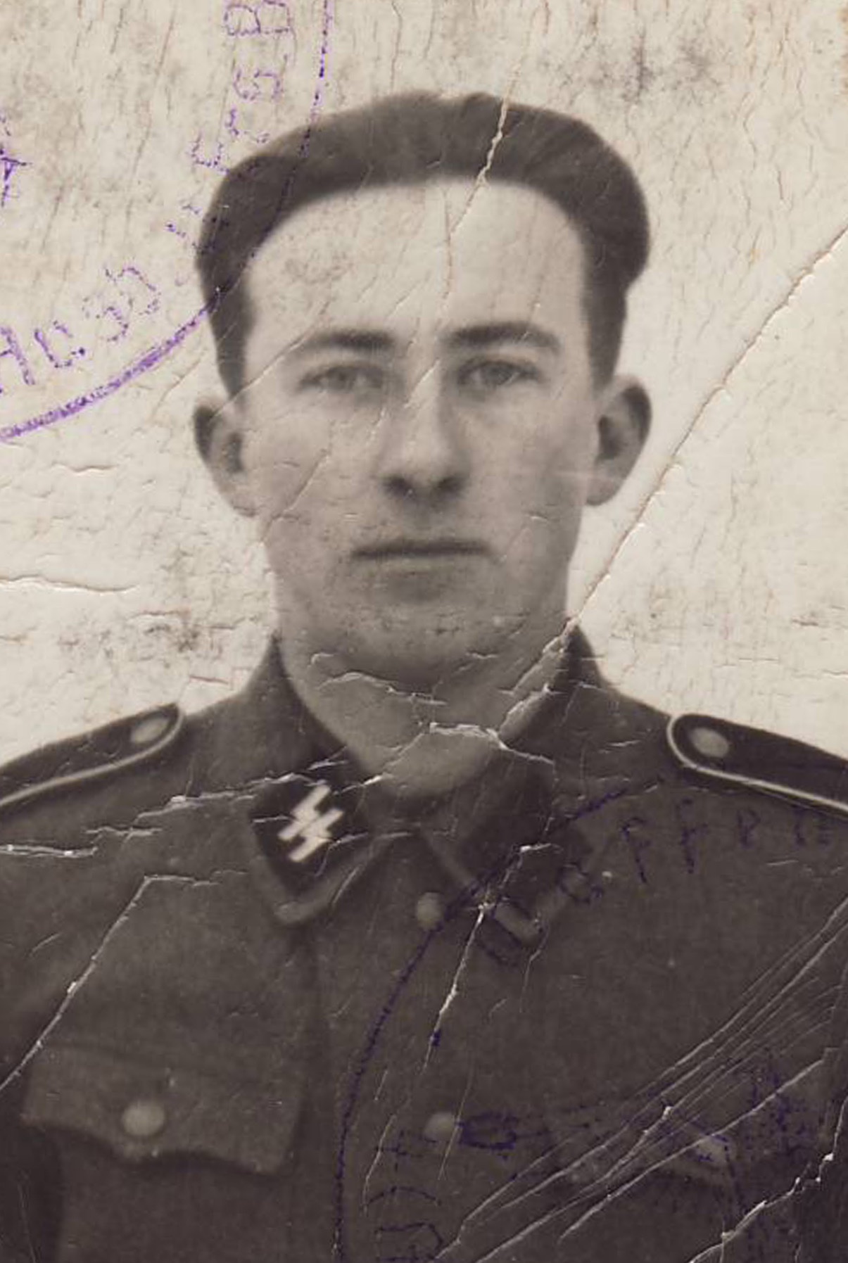 LW-Helfer / SS-Grenadier Henry Rüütel, säilinud on ainult palgaraamatu esikaane siseküljel olnud portreefoto.