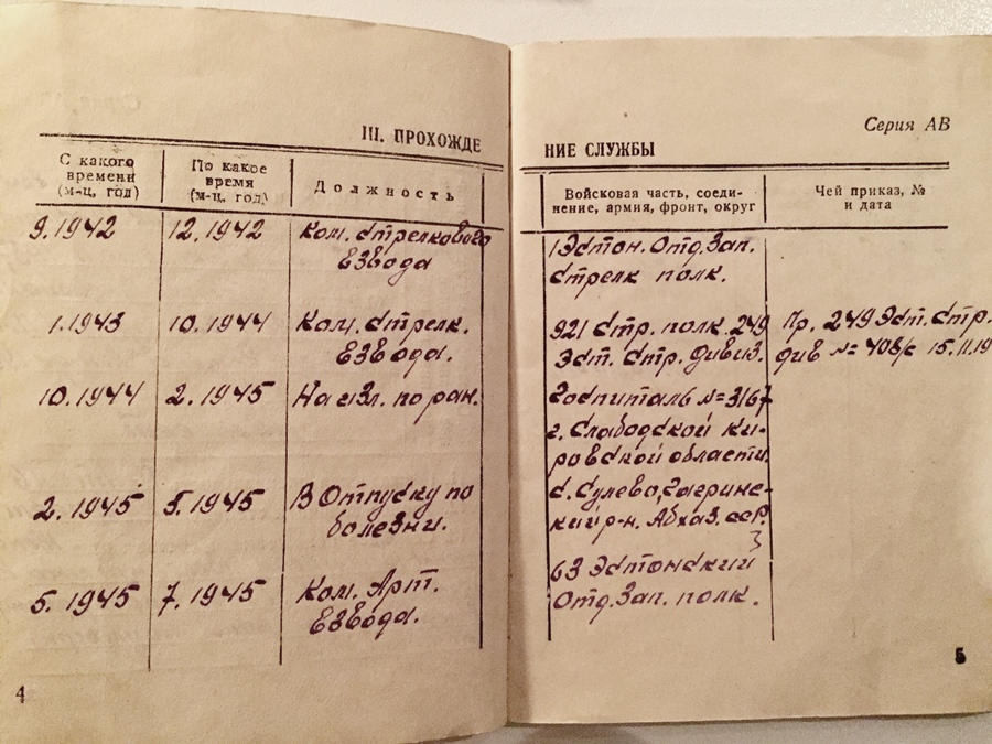 Ka kirjeldatakse, et haavatasaamise tõttu pea valutab pidevalt ja et käesoleval ajal töötab endine rindemees Tallinna meditsiinitehnika vabrikus maalrina.
